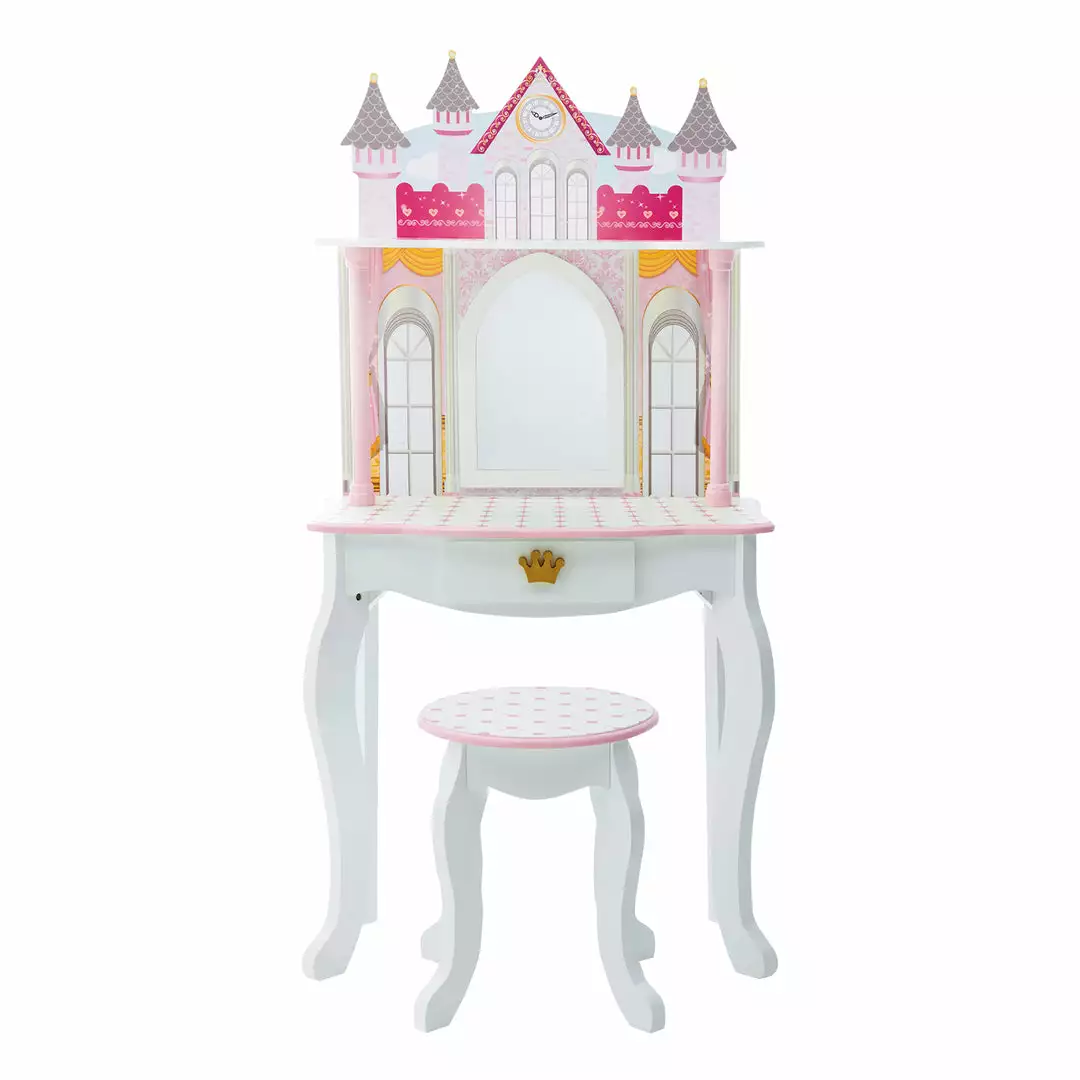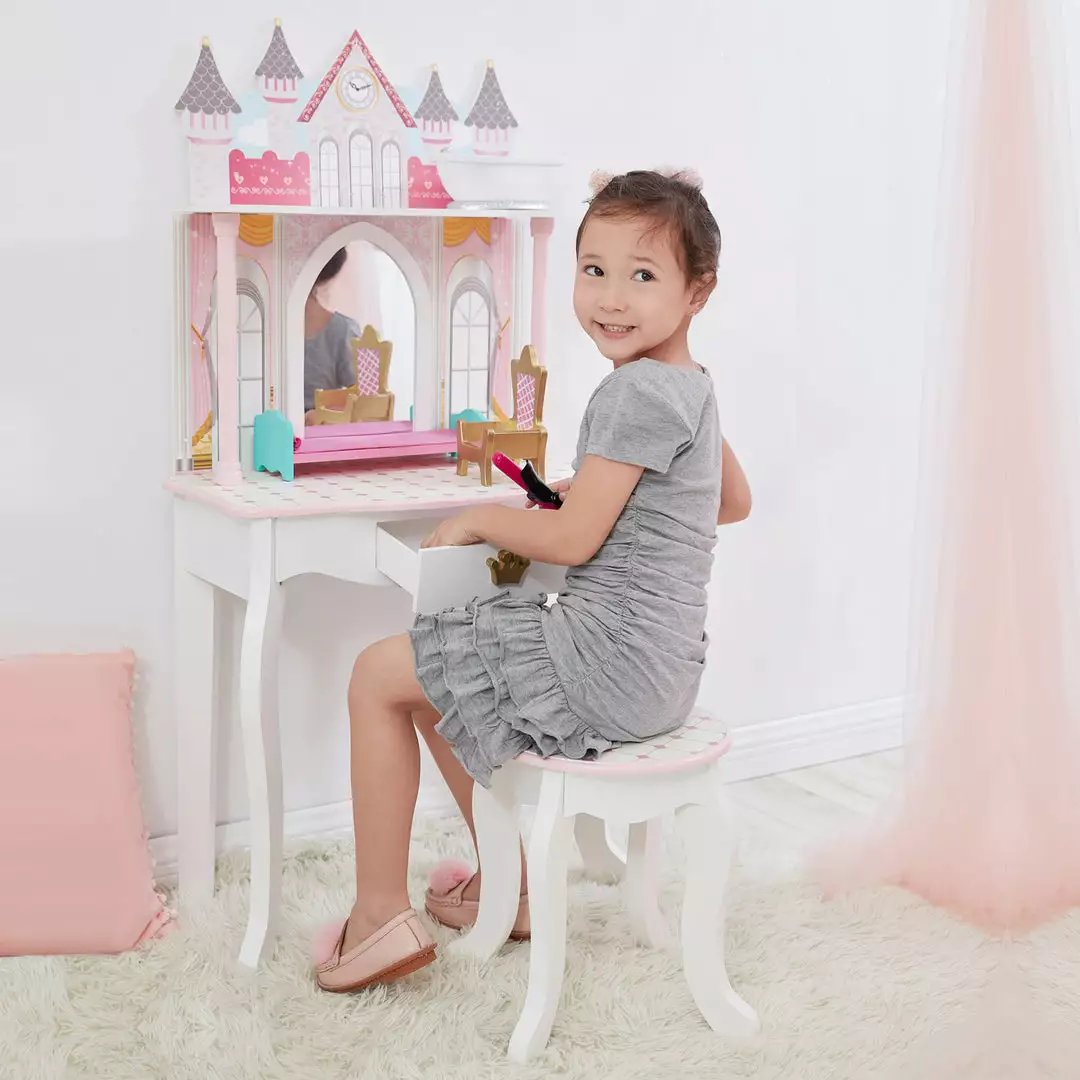 Fantasy Fields Kids Dreamland Castle Vanity Set with Chair and Accessories, White/Pink