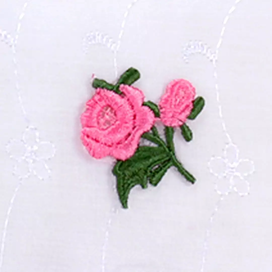 - DETAILED: The white eyelet comforter and pillow each feature a gorgeous lace trim and the long pillow includes a beautiful embroidered pink rose detail with green leaves.