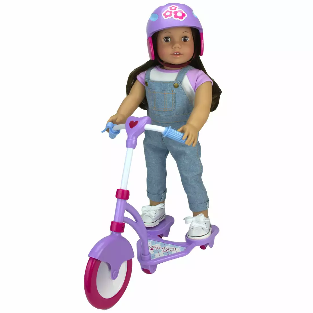 - ENDLESS ADVENTURES: Your little can travel anywhere in imagination with this sporty ride and safety helmet, taking the scooter out to “visit” other dolls and plush animals.