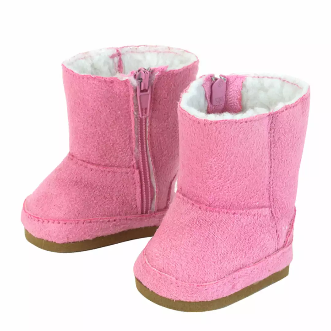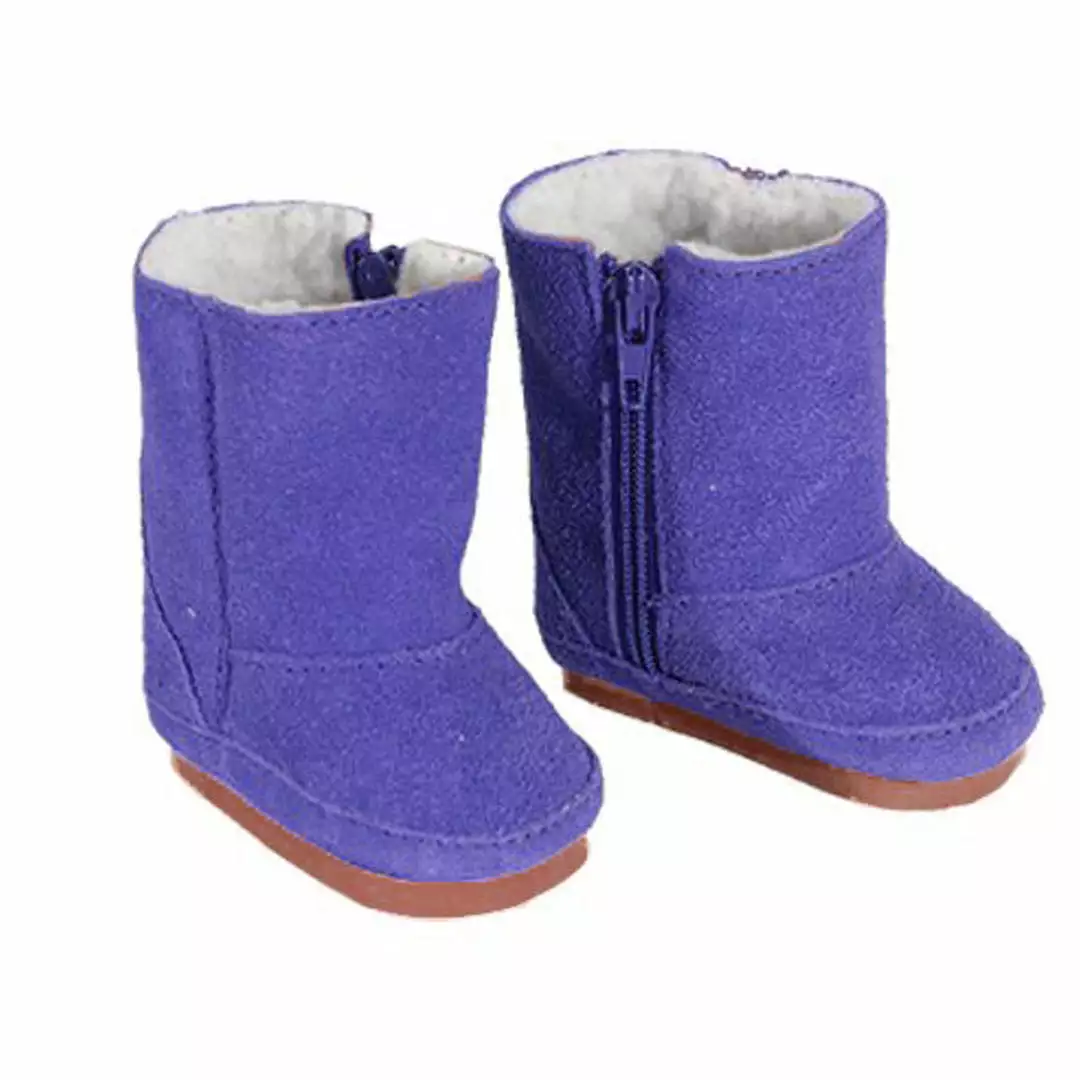 - INCLUDED: Set includes three pairs of suede boots – one pink, one purple and one tan. Perfect for any child lucky enough to have 3 dolls, or for options on cold winter days.