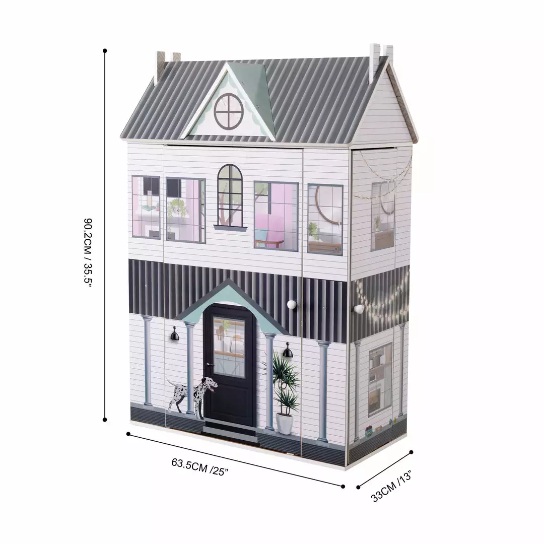• KIDS DOLLHOUSE SET: Modern farmhouse-style dollhouse is compatible with 12″ dolls and completes any home, classroom, preschool, or daycare playroom