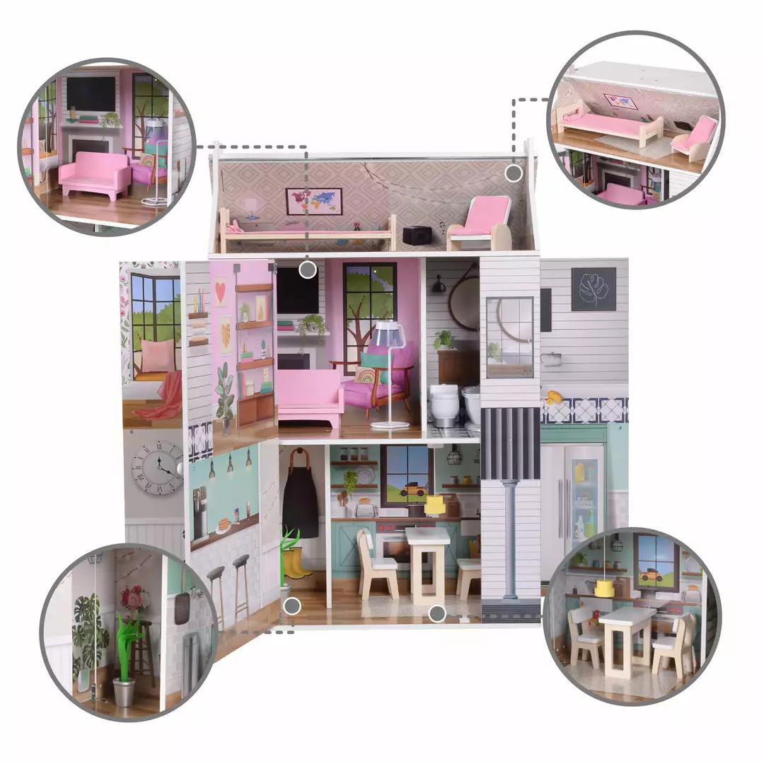 • 3-SIDED DESIGN: Three openable doors and roof panel access various parts of the house for more engaging play, while the kitchen, living area, bedroom, bathroom, and rooftop deck make it a dream home