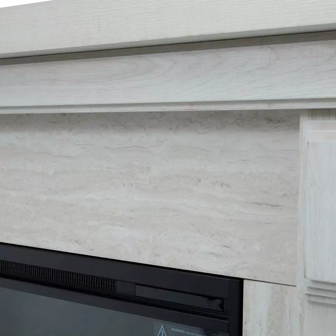 - STYLISH DESIGN: This white fireplace mantel with gray faux marble surround and decorative wood grain legs and hearth gives you a sophisticated modern look for any style and any room in your house.