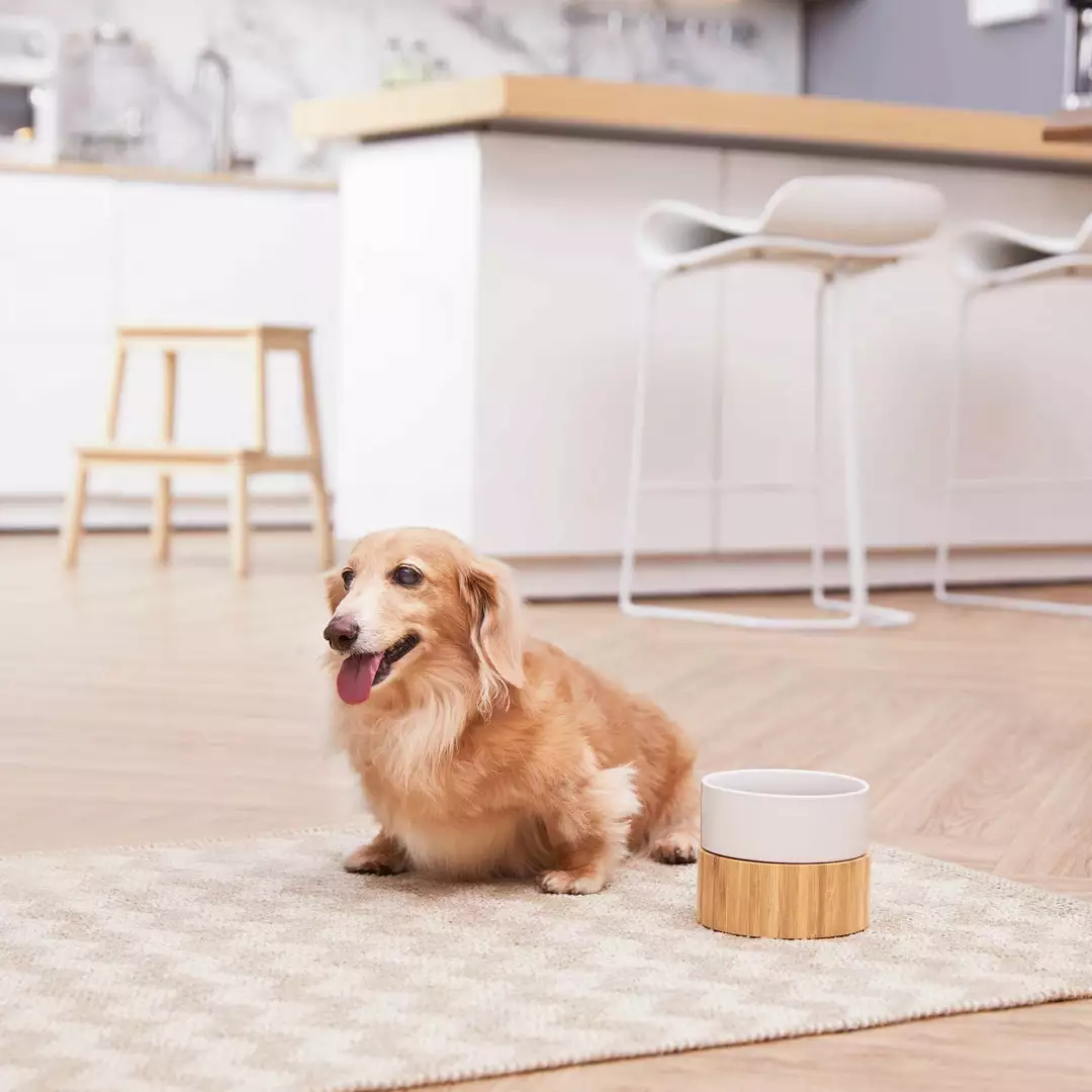 Keep your four-legged friend happy and healthy with this veterinarian recommended Billie Elevated Ceramic Pet Bowl by Teamson Pets! Billie’s raised bamboo base is not only stylish, but maintains pet posture, which removes strain on the neck and joints. Non-slip pads and a securely sitting white dishwasher safe ceramic bowl prevent food or water spillage, protecting your pet AND your floors. Sized for cats and small or toy breed dogs.