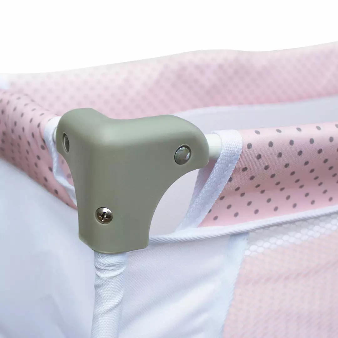 - 3-IN-1 NURSERY SET: Features pink fabric with gray polka-dot accents for a fun addition to your child’s bedroom or play area