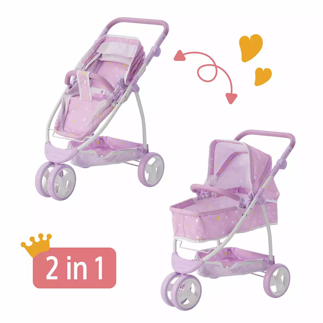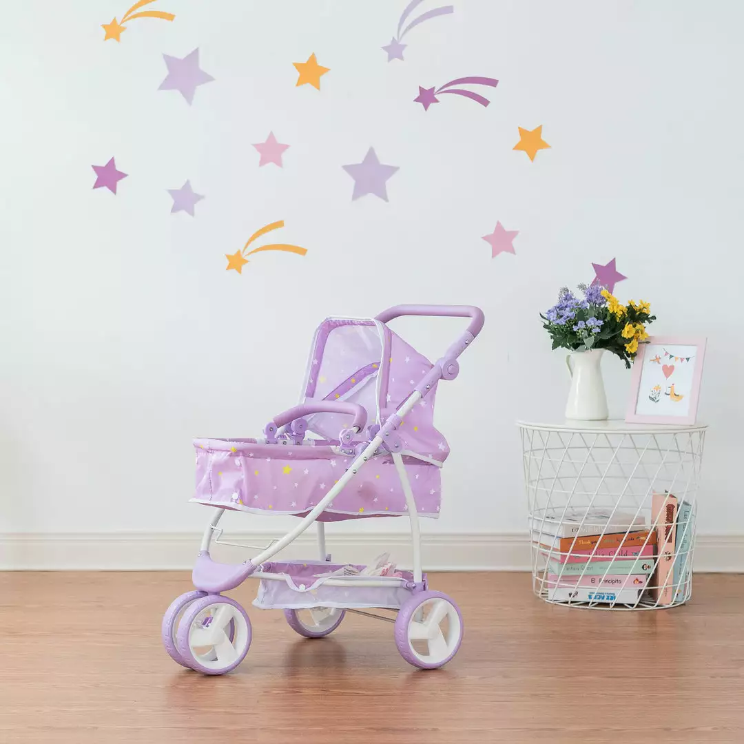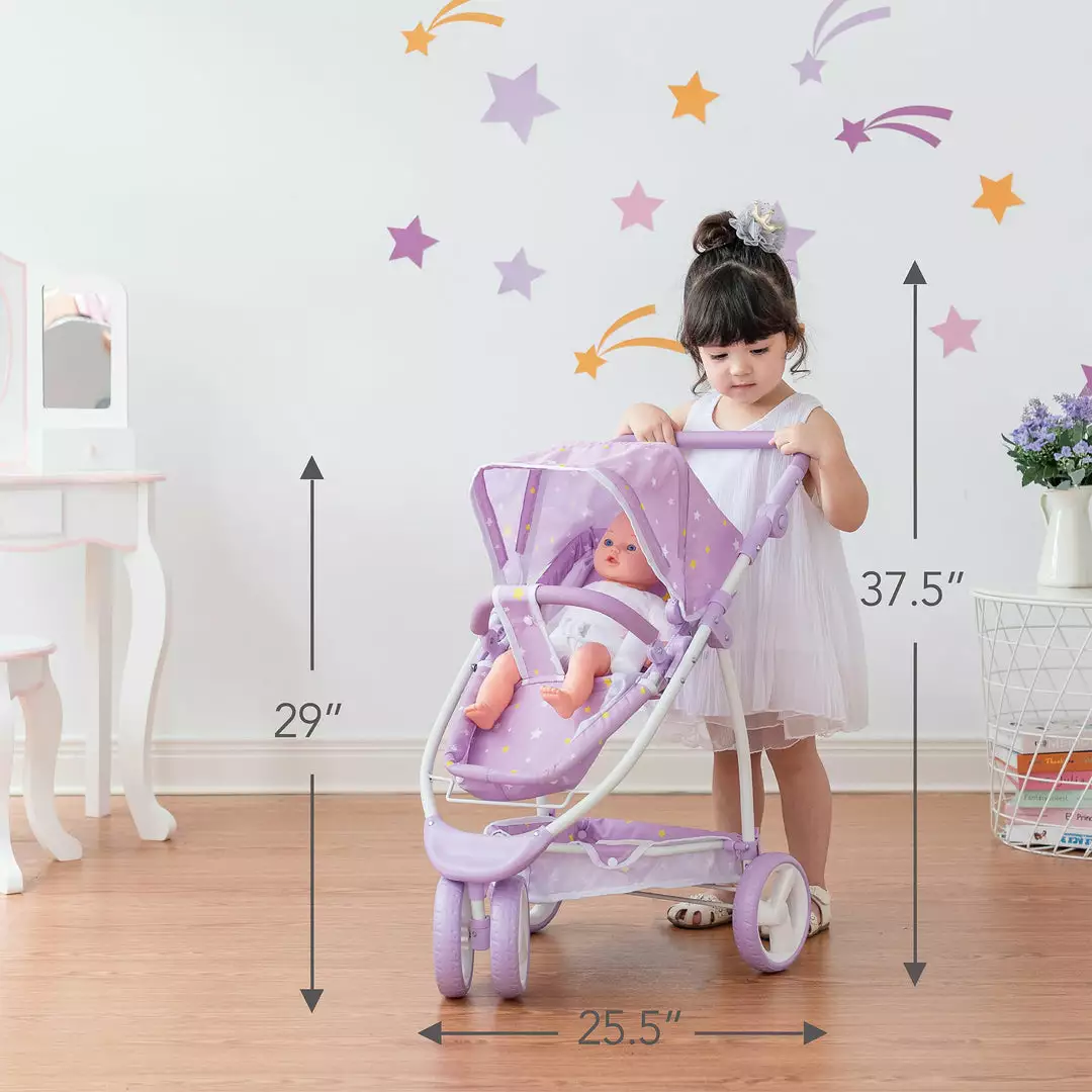 TeamsonUS Olivia’s Little World Twinkle Stars Princess 2-in-1 Baby Doll Stroller, Purple
