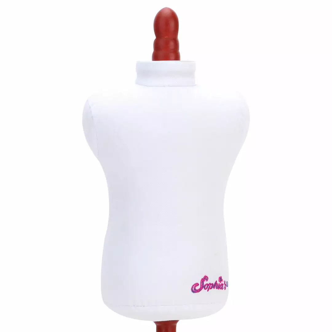 Put your cutest doll clothes on display with the Sophia’s by Teamson Kids White Dress Form. This high-quality stand features a plush torso and wooden base. The doll sized mannequin is perfect for dressmakers, or to place ones favorite doll clothes on display.