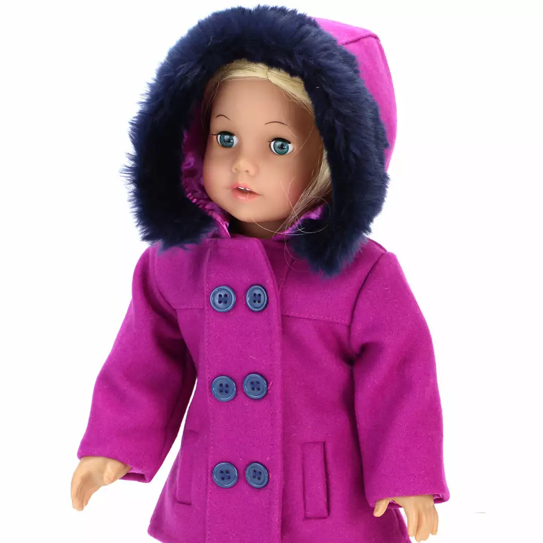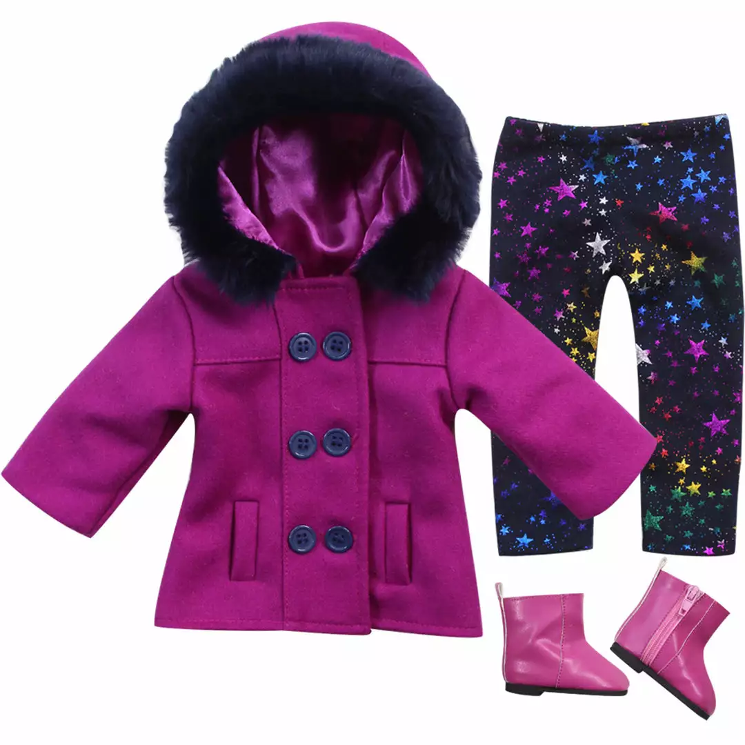 Add some life to your little one’s doll’s winter wardrobe with the Sophia’s by Teamson Kids 3-Piece Magenta Peacoat, Star Leggings and Ankle Boots Set. With gorgeous colors, a dressy doll coat, leather-like boots and iridescent print leggings, their doll will be prepared for the cold weather while staying in style!. If your kiddo isn’t a fan of bulky winter wear, encourage them to dress their doll in its winter coat so the two are matching before heading out — a sure way to put a smile on their face. Doll not included.