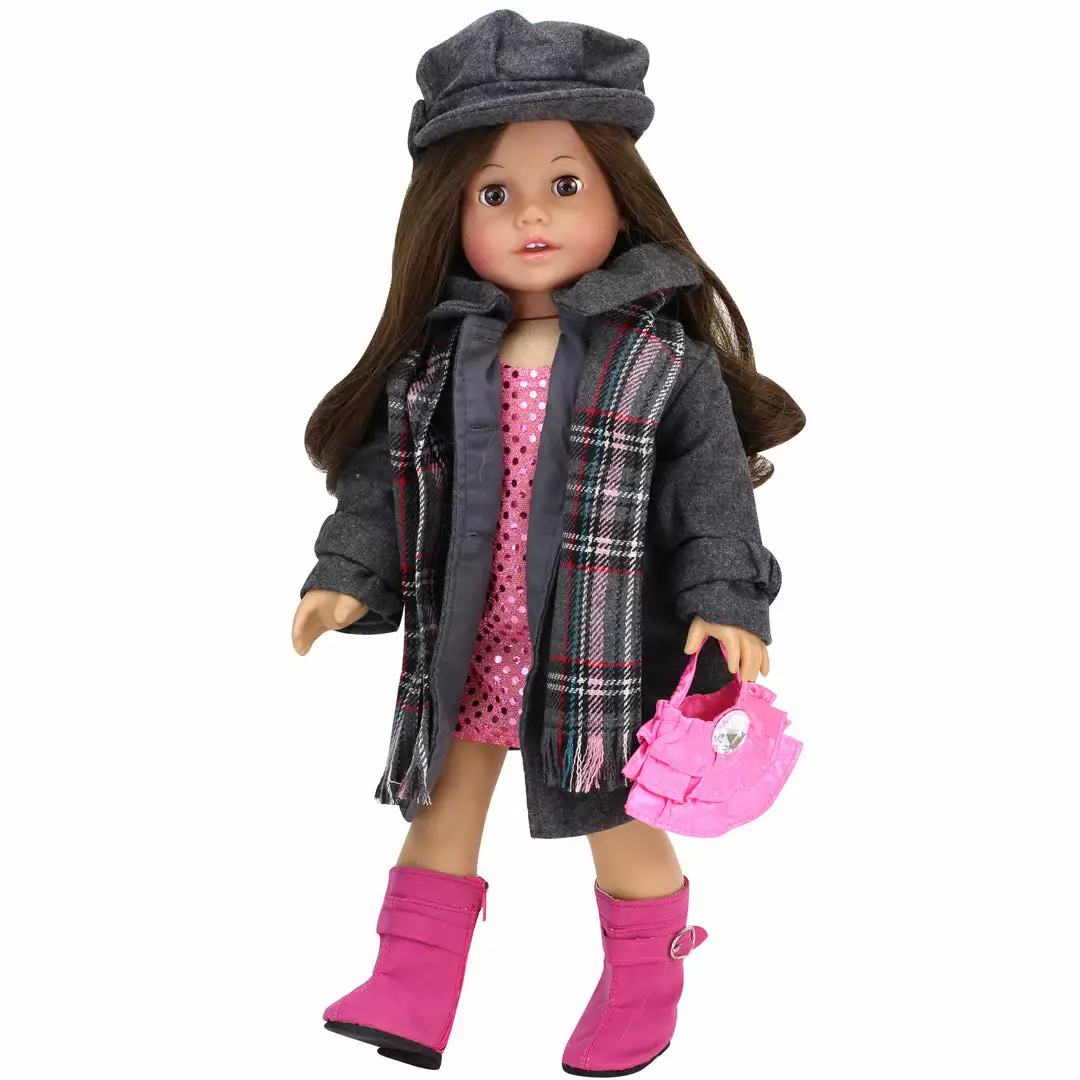 It’s time to get your little one’s doll ready for the cold winter months with the Sophia’s by Teamson 4-Piece Winter Jacket set. This gray bundle features a wool-like pea coat, matching hat, plaid scarf and pink boots. Let your child wrap their favorite doll in this warm set to be ready for anything the season has in store — from making snow angels outside to Christmas shopping with her friends. Doll not included.
