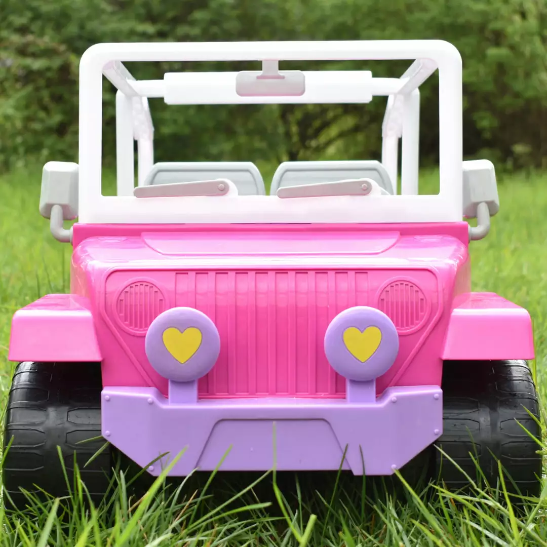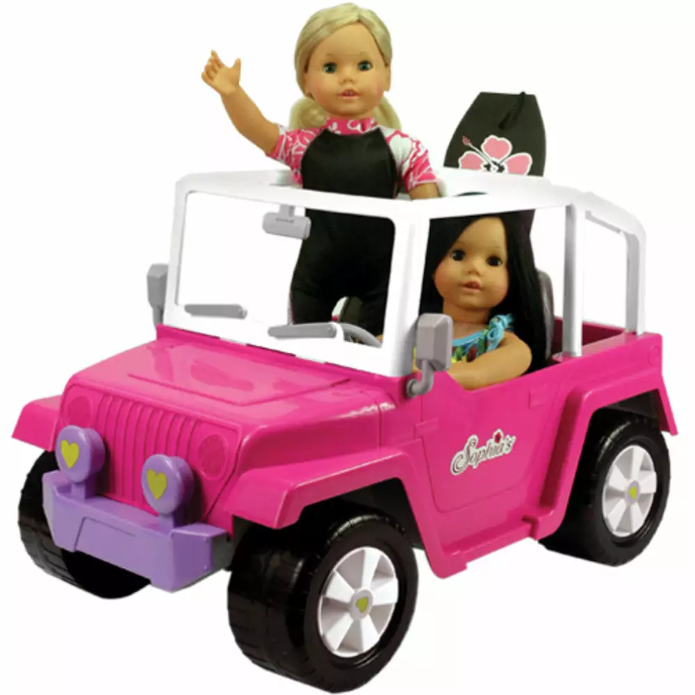 Complete your little one’s doll accessory collection with the Sophia’s by Teamson Kids 4 x 4 Beach Cruiser. This cruiser vehicle features a hot pink and bright purple design and functional wheels to provide hours of endless fun for your children’s dolls. The trunk in the back offers space for all of their doll’s beach day accessories such as surfboards, swimsuits, and more. With room for two dolls, your little one can take their favorites cruising around town or to the beach together while playing pretend! Made for 18″ dolls, the set is compatible with Sophia’s dolls, American Girl dolls, My Life As dolls, Our Generation dolls, and more! The truck measures 23″ x 14″ x 15″ for convenient storage in cabinets, closets, and toy boxes when not in use. Dolls not included.