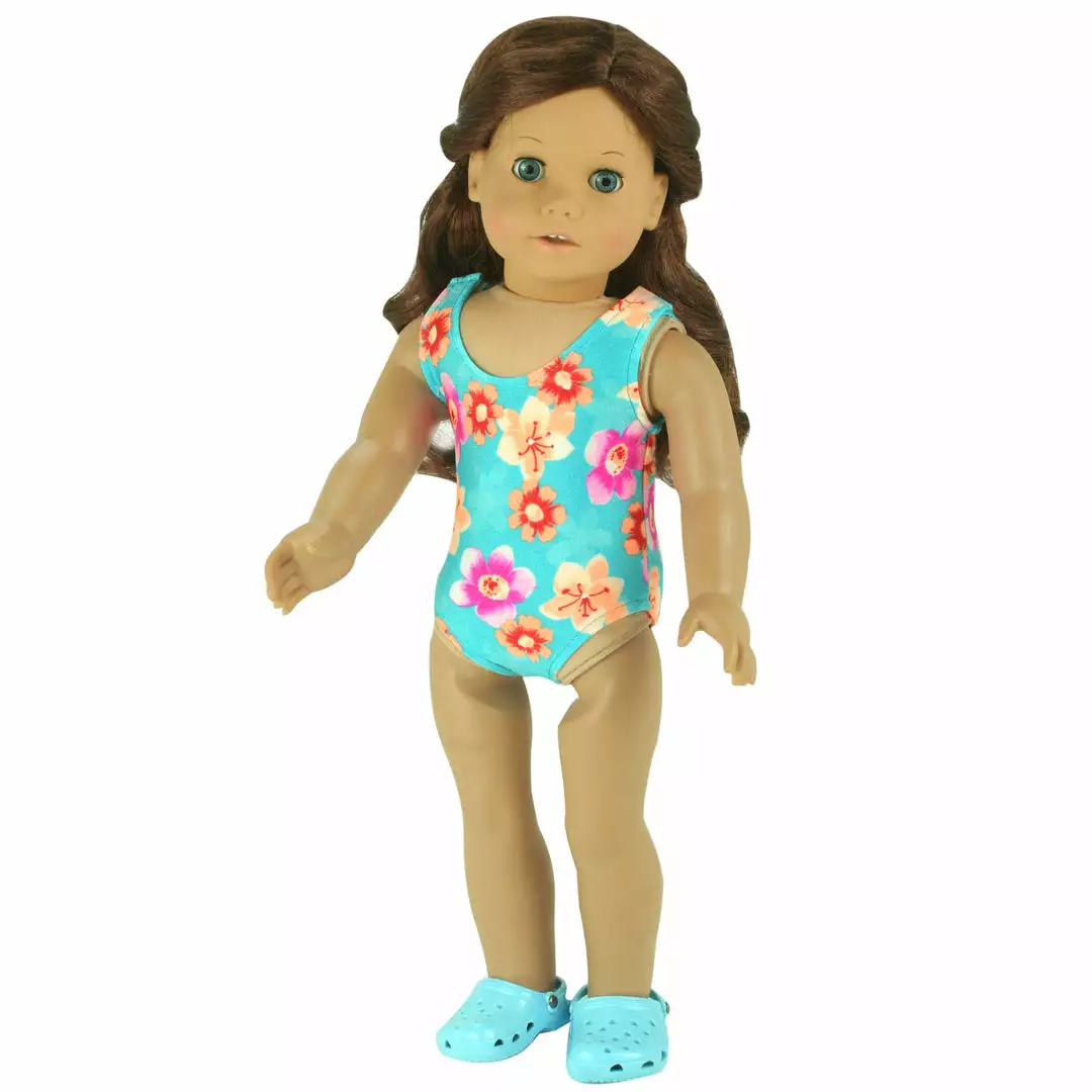 - INCLUDED: One pair of aqua garden clogs sized for 18 inch dolls.
