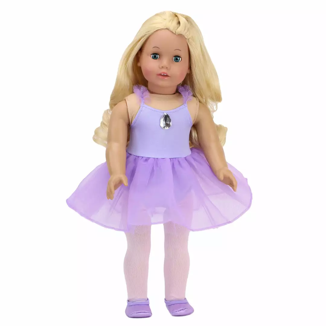 - LOVELY LAVENDER TONE: While many ballet outfits tend to be pale pink, let your little one’s doll make a gorgeous, stylish statement with this pastel purple ballerina set!
