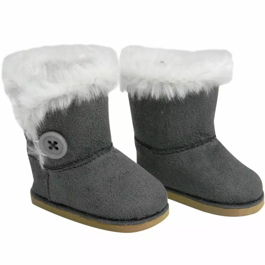 - FUN PRETEND PLAY: With their white fur lining and trim, the gray suede style boots feature a gray side button with soft tan soles to encourage your little one to use their imagination while playing