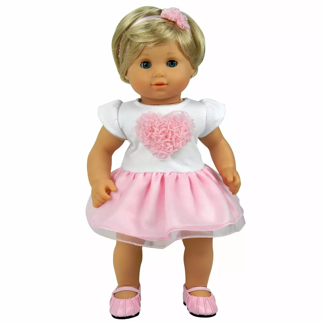 TeamsonUS Sophia’s Heart Dress And Headband Outfit For 15” Dolls, White/Pink Kids