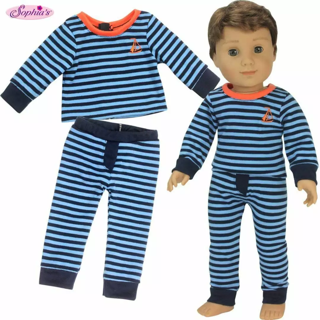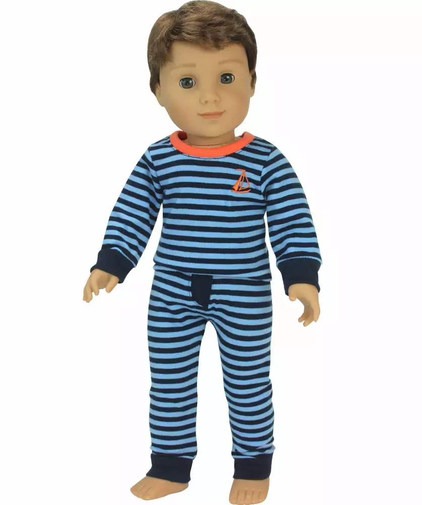 - DOLL CASUAL OUTFIT SET: Includes blue striped pajama pants with navy cuffs and a long sleeve shirt with an orange sailboat embroidery detail for a cozy bedtime outfit