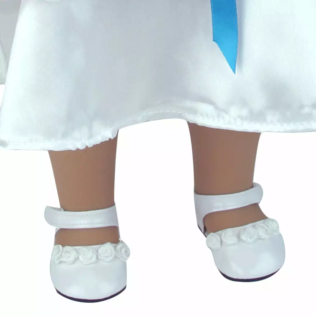Your little one can accessorize their 18″ doll in these rose-adorned white dress shoes from Sophia’s by Teamson Kids. These glossy dress shoes feature an ankle strap for adorable support and can be worn to dress up any outfit! Made for 18″ Dolls, the shoes are compatible with Sophia’s by Teamson Kids Dolls, American Girl dolls, My Life As dolls, Our Generation dolls, and more! Dolls not included.