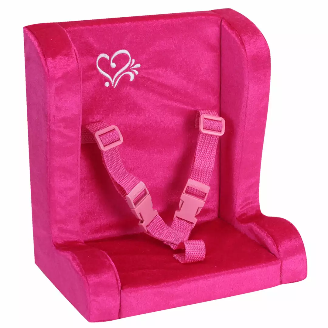 - DETAILED: This vibrant hot pink velour travel seat includes a 3 point harness to secure the doll in place, and a loop at the base to keep the seat steady. A white stitched heart is embroidered on the backrest for an added touch of detail!
