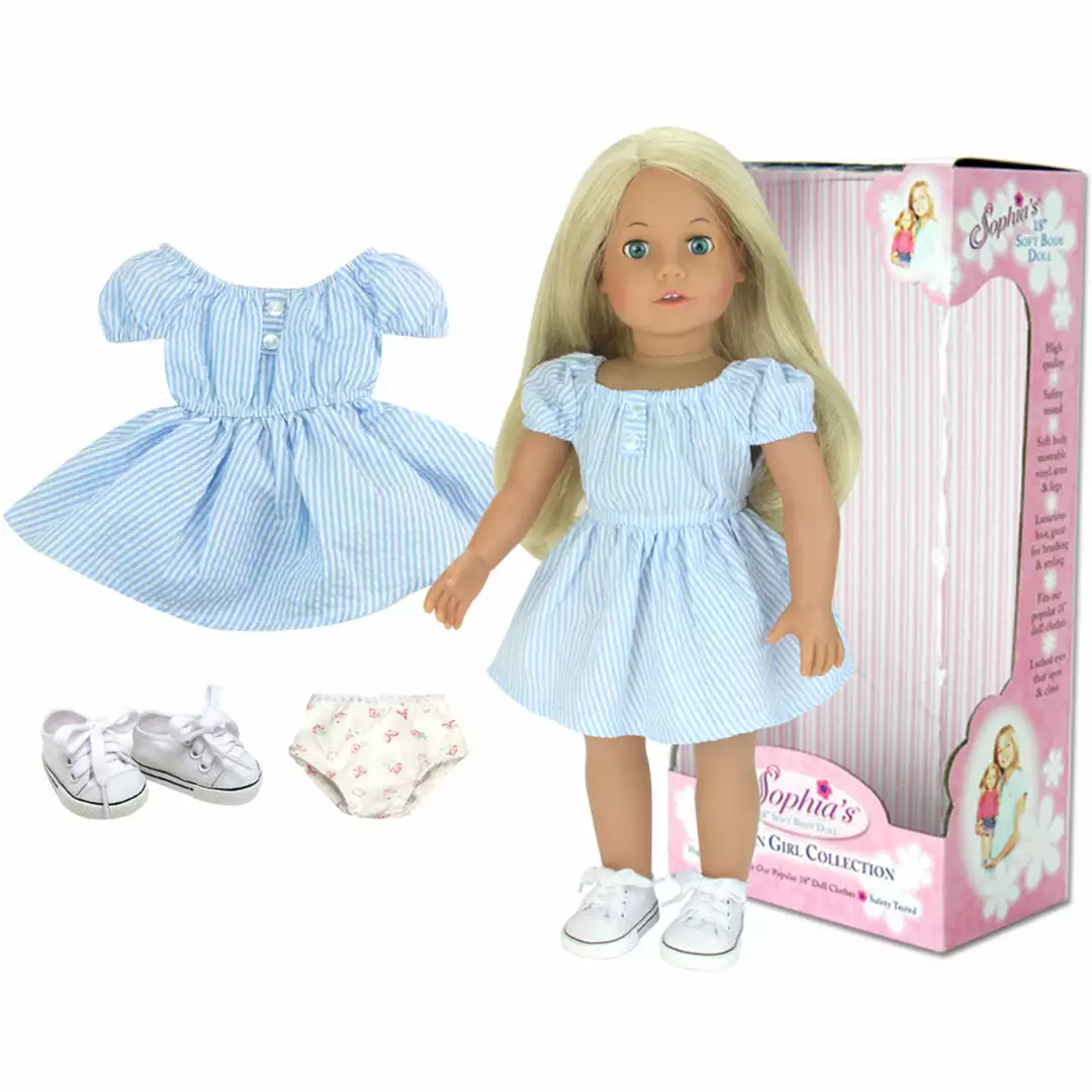 TeamsonUS Sophia’s Posable 18” Soft Bodied Vinyl Doll “Sophia” With Blonde Hair And Blue Eyes, Light Skin Tone New