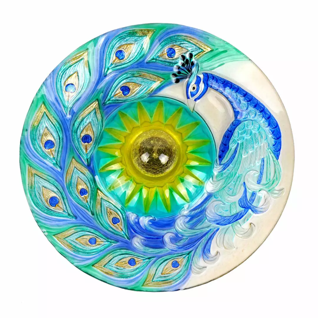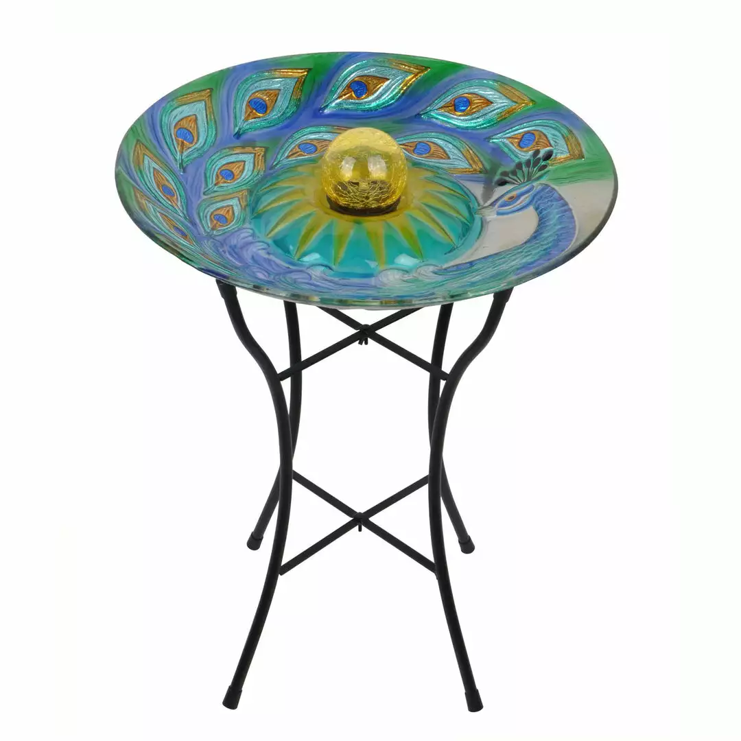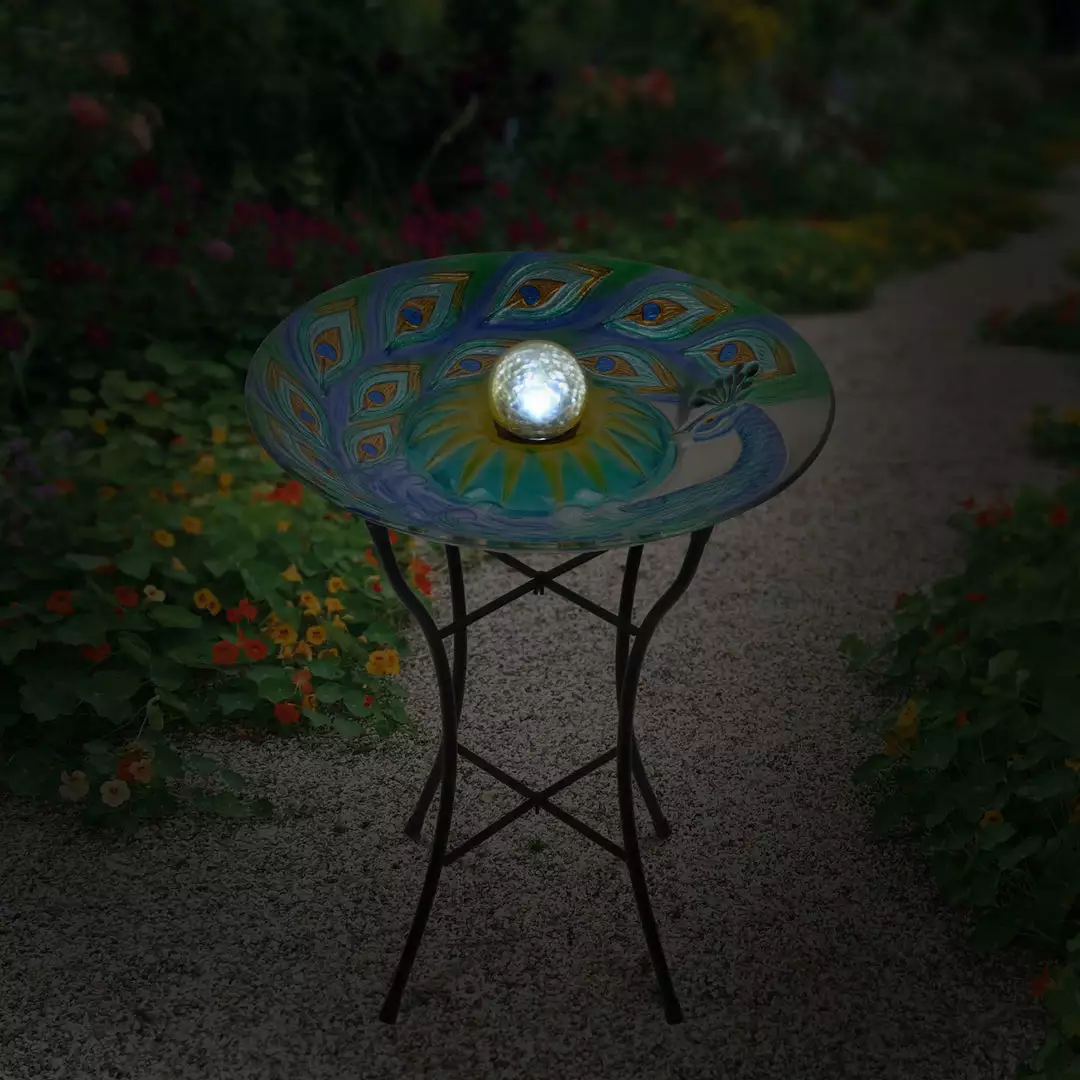 TeamsonUS Teamson Home 18 Inch Solar Glass Birdbath – Peacock