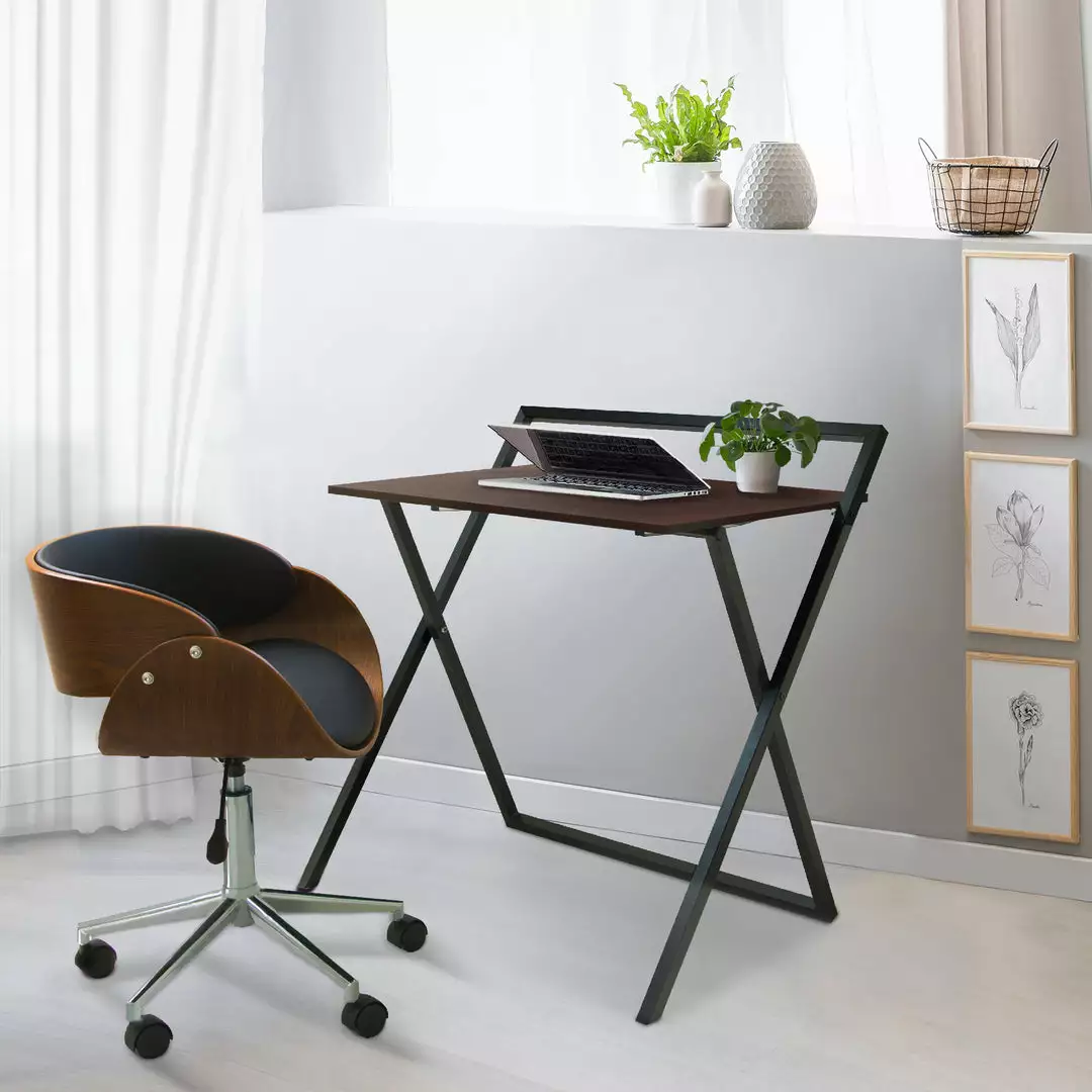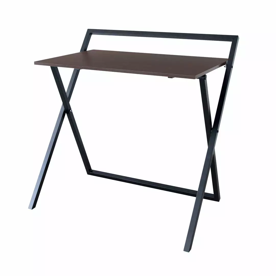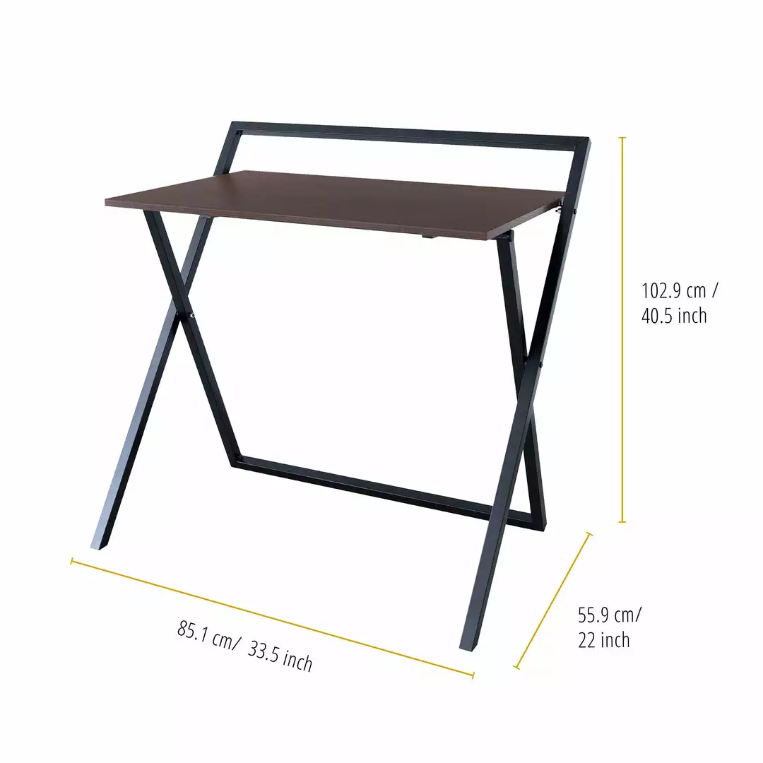 - STYLISH FOLDING DESK: Features a classic natural wood finish with a black metal base for a sleek and functional addition to your office or living space
