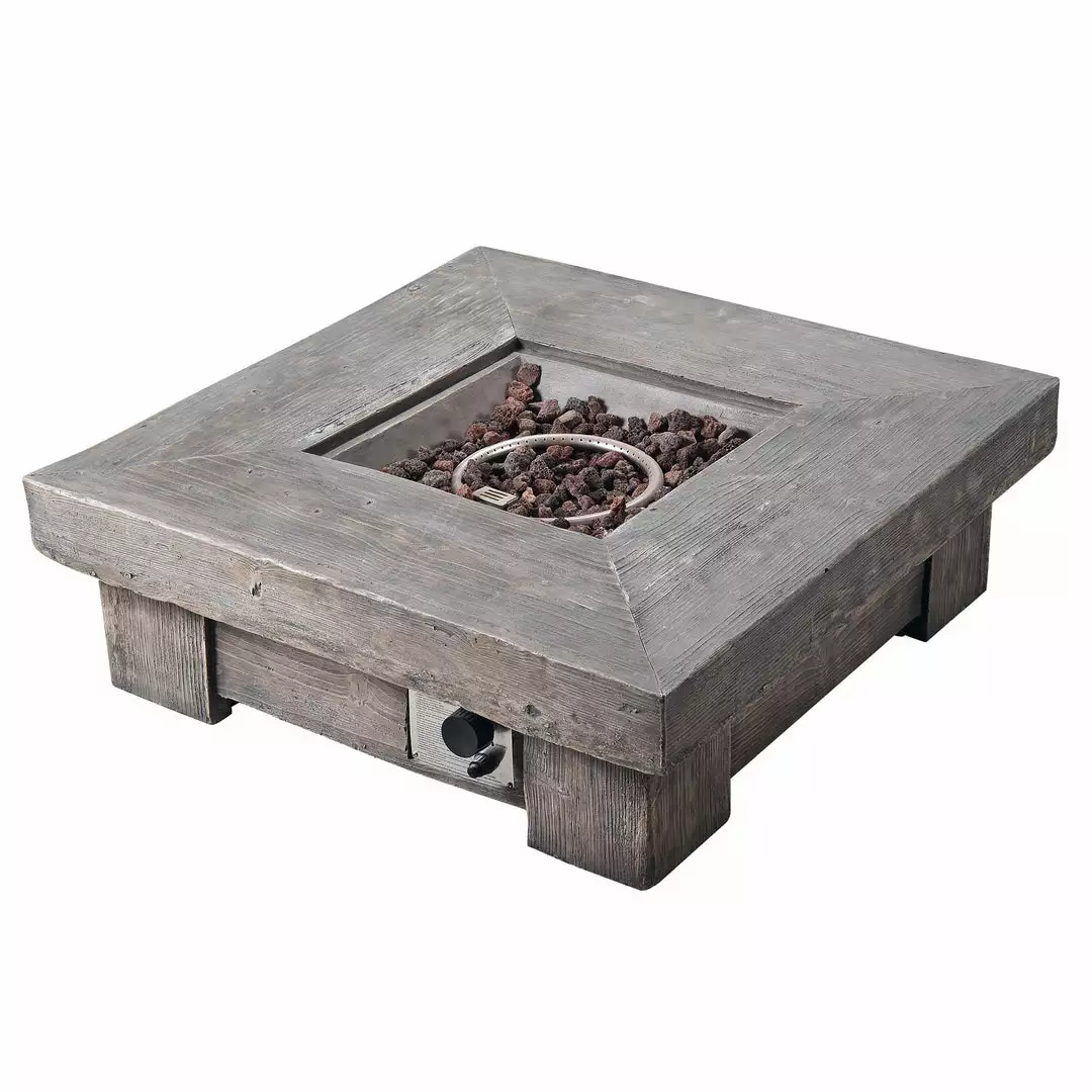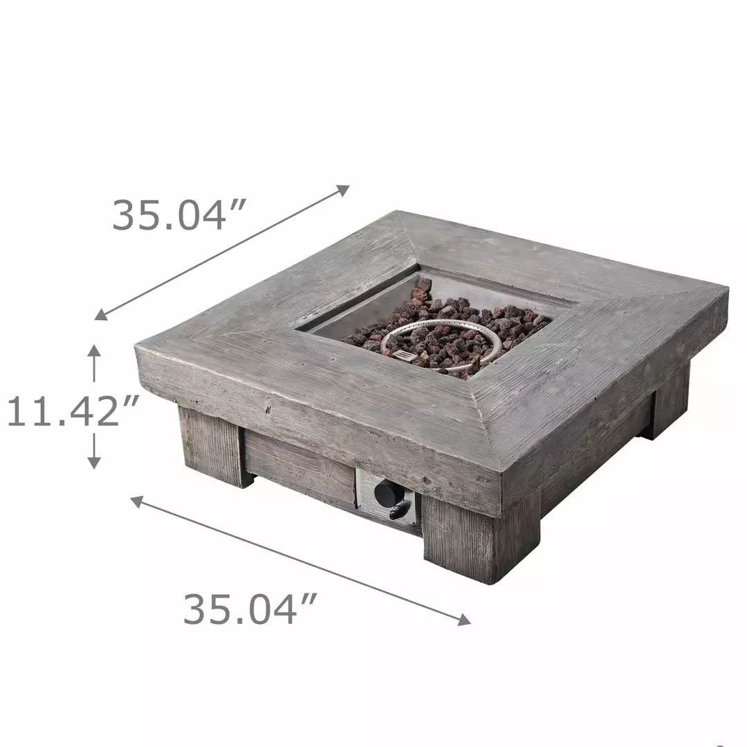 Teamson Home 35″ Square Retro Wood Look Gas Fire Pit