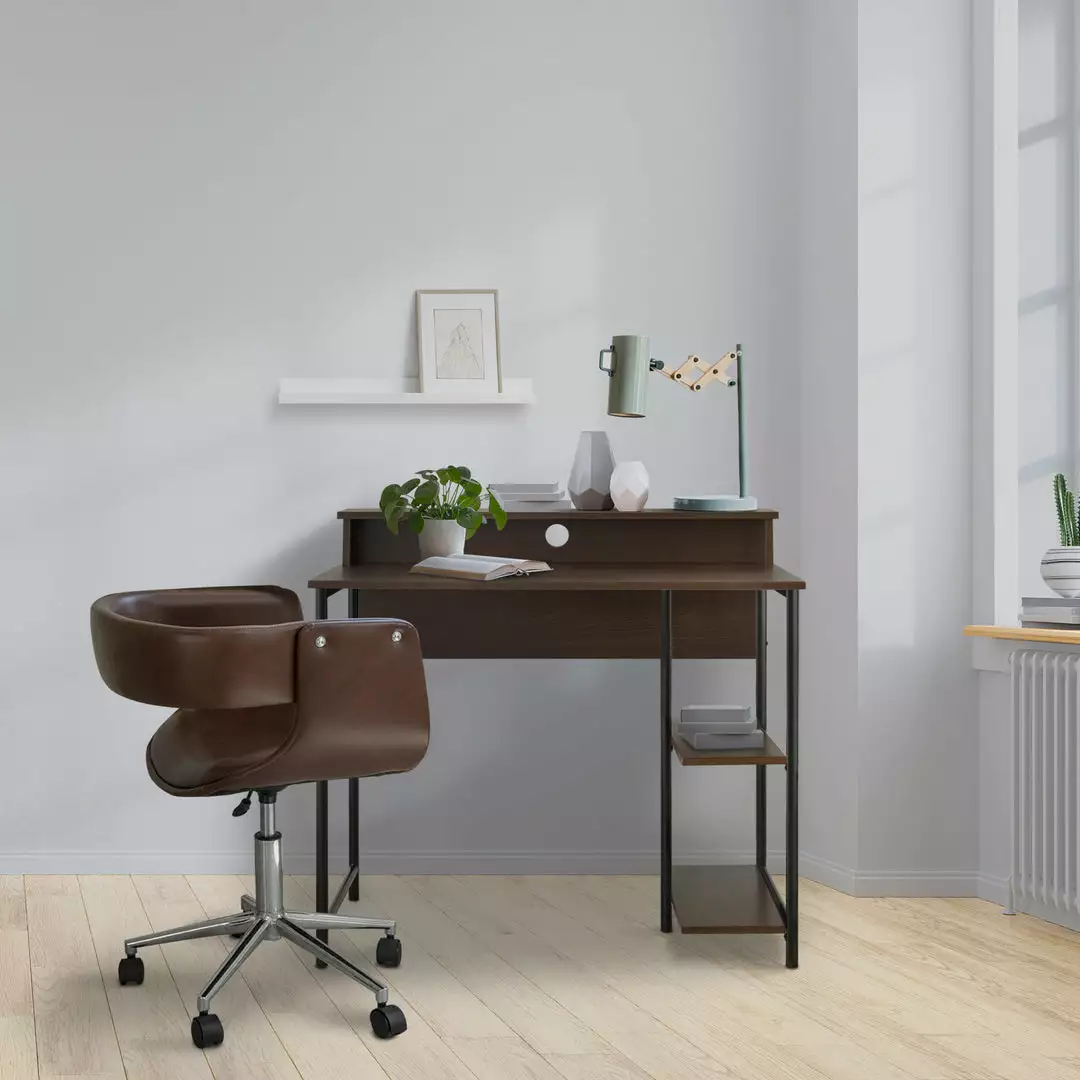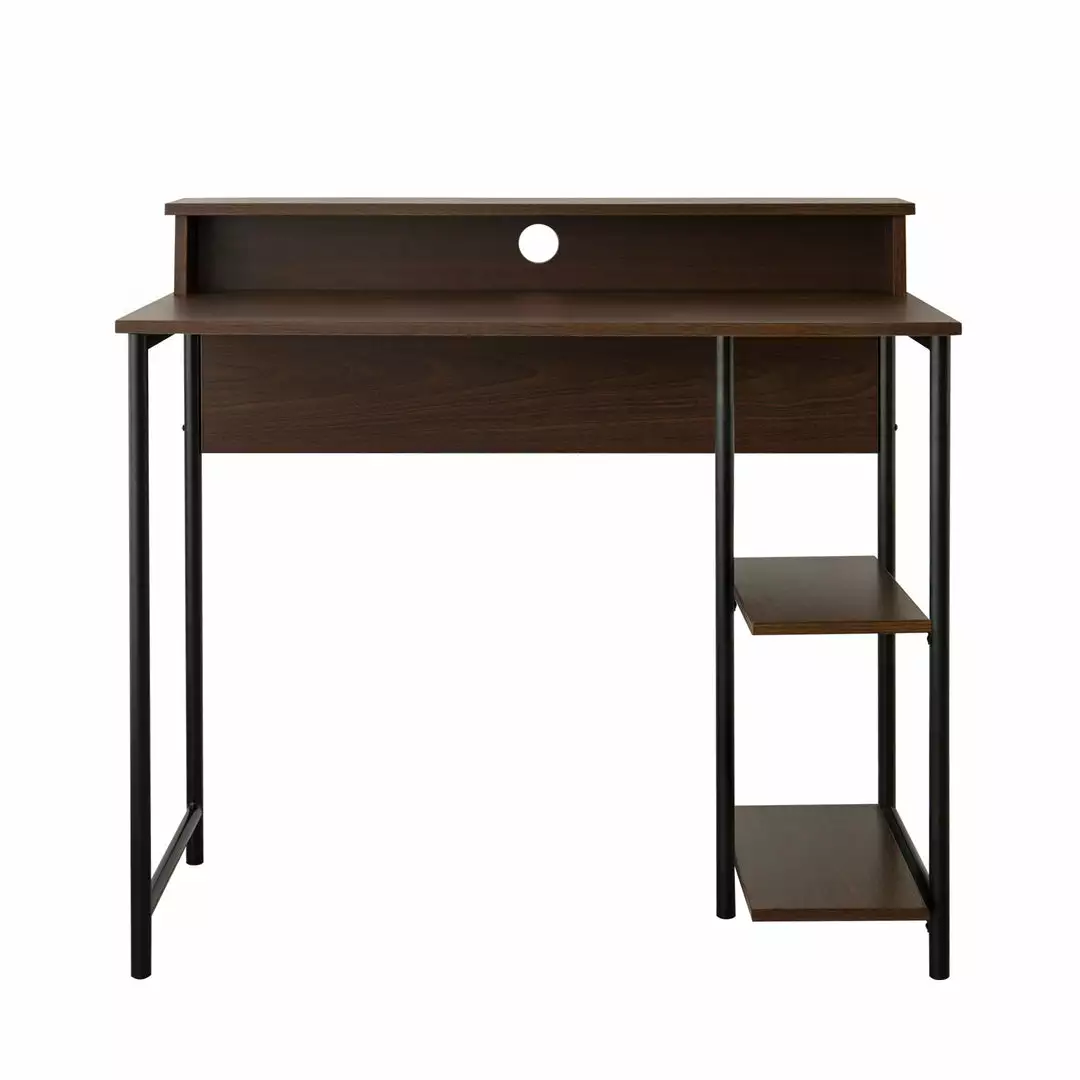 - STYLISH WRITING DESK: Features a classic natural wood finished-top and shelves with black metal legs for a sleek and functional addition to your office or living space