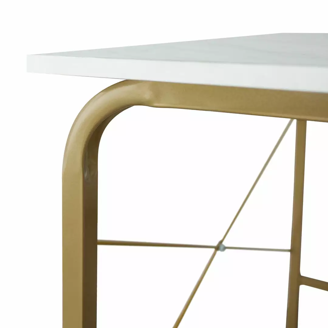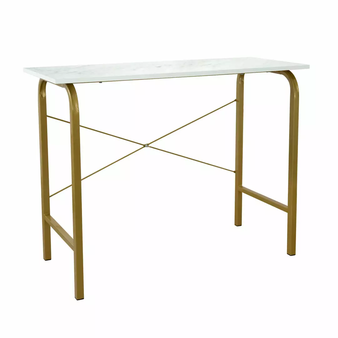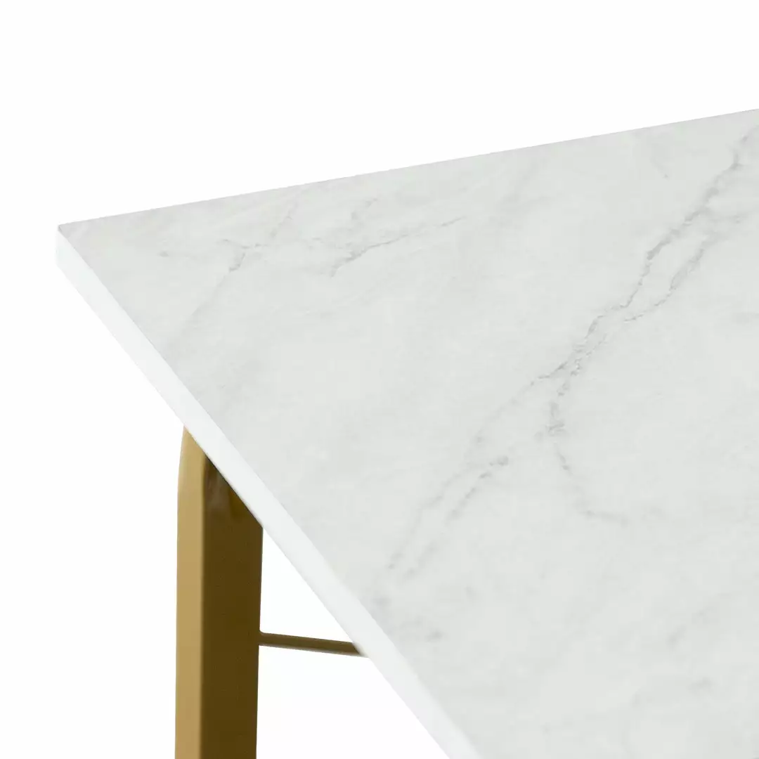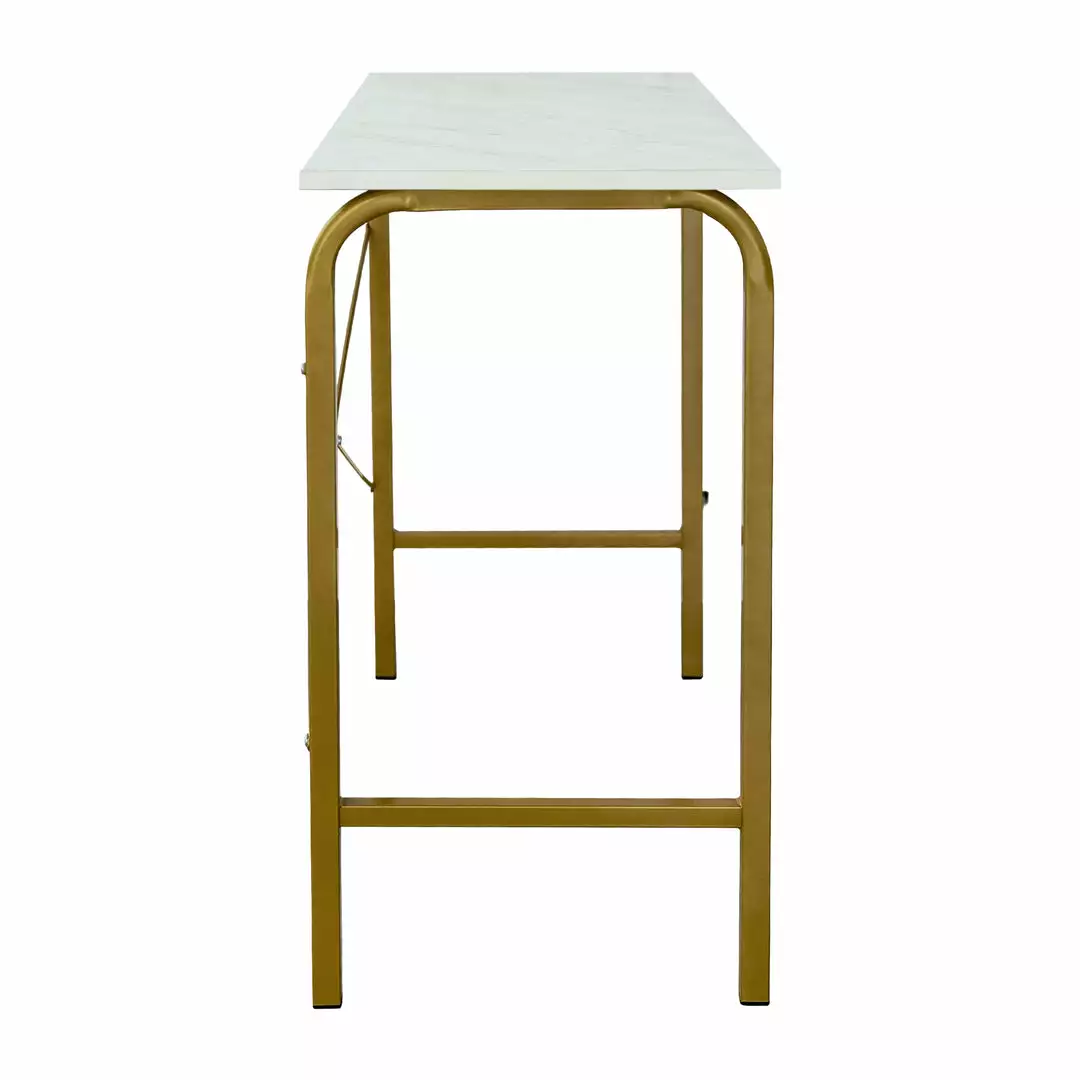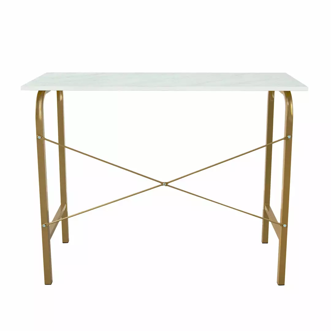 - STYLE: Tabletop wrapped with trendy faux marble complements the brass finish metal legs. Perfect for home office, study room, children’s room, living room and even the kitchen.