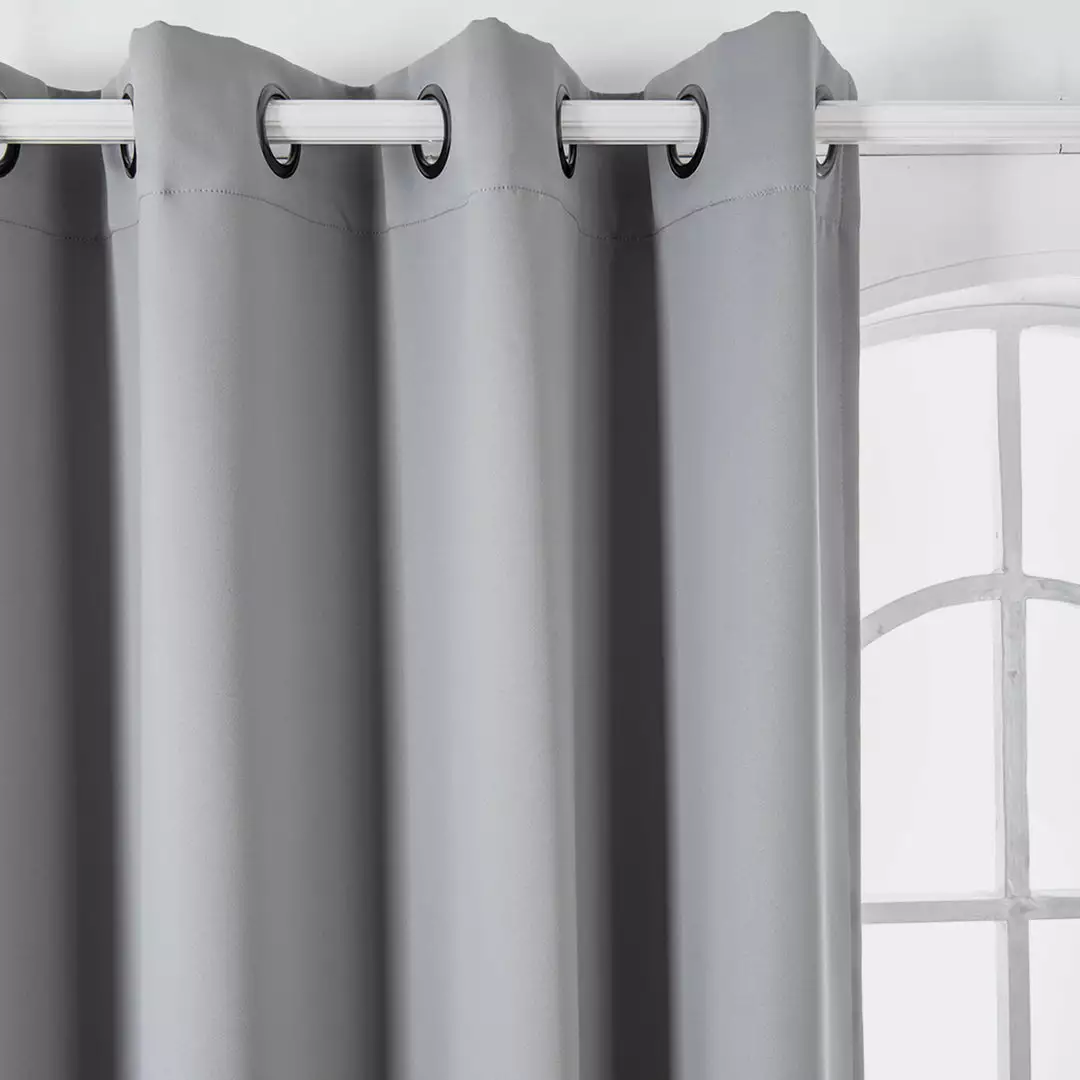 Update your home decor with the 63″ Lamia Premium Solid Insulated Thermal Blackout Grommet Window Panel pairs from Elegant Home Fashions in a Fossil Grey color. They are designed to reduce energy usage; block out up to 99% of outside light and blocks up to 40% more noise than standard curtains. Panels are made from 100% polyester with a softness that drapes beautifully, and are machine washable. The set includes two window panels and two ties. Each panel has 8 of 2.5 inch eyelets; each eyelet inside diameter is 1.6 inch for easy hanging from a decorative window rod.