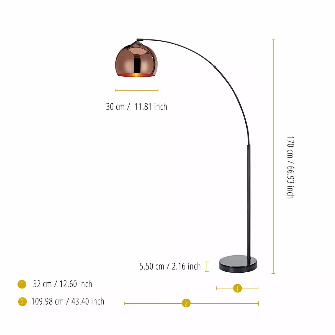Brighten the atmosphere in your home or office with the Arquer Floor Lamp that features a dramatic arc that carries the eye to the contemporary design of a floating bell-style lamp shade. This curved floor light fixture sits on a beautiful black marble base that is the perfect complement to the opulent rose gold finish. Flick the floor switch on the Arquer luminary and enjoy the evenly spread efficient glow of a single 5 w E26 bulb.