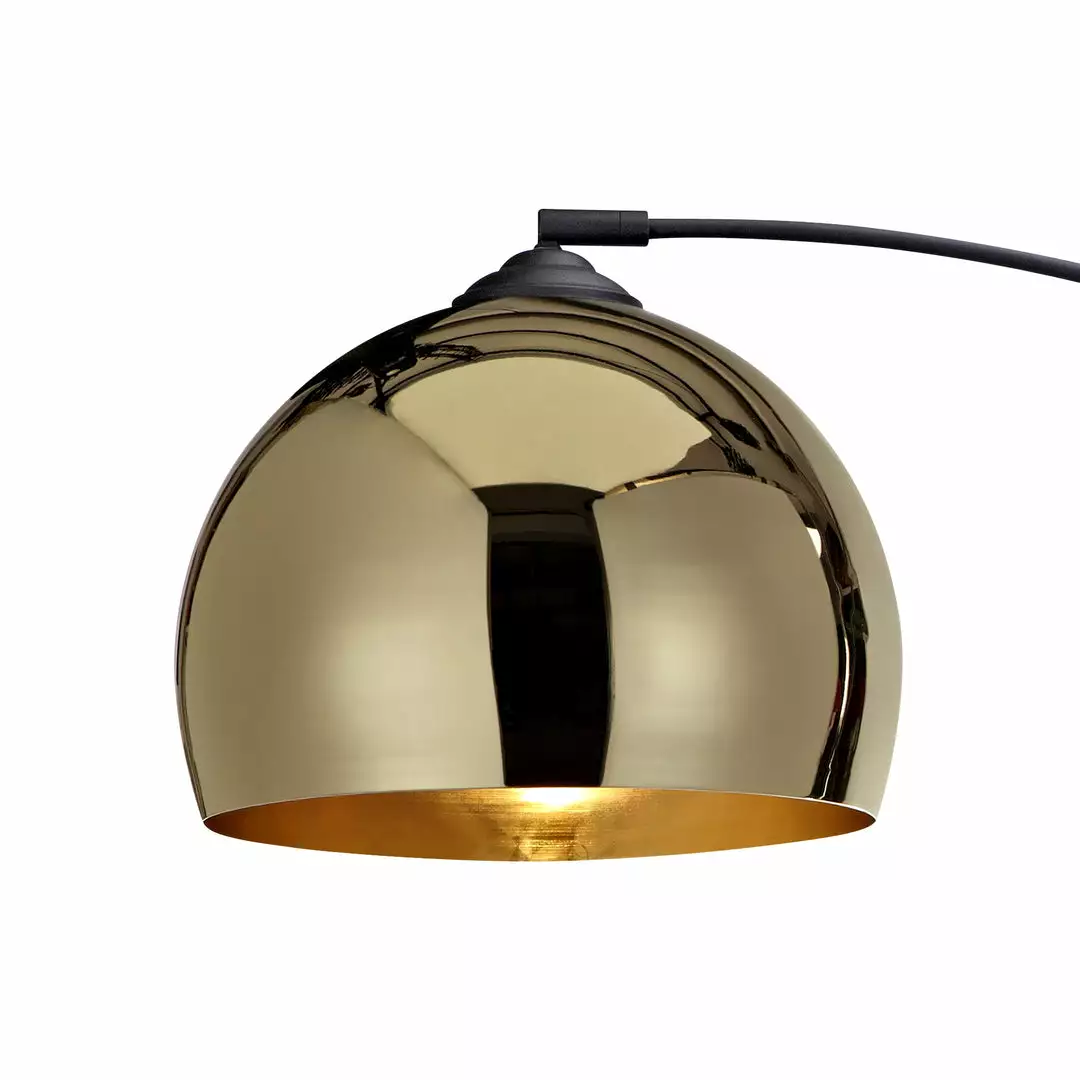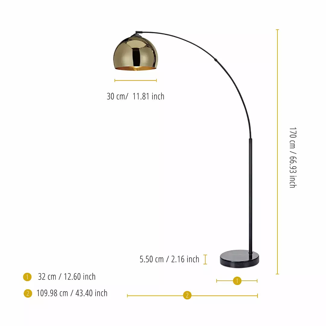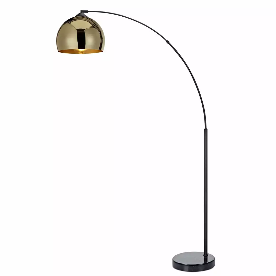 Brighten the atmosphere in your home or office with the Arquer Floor Lamp that features a dramatic arc that carries the eye to the contemporary design of a floating bell-style lamp shade. This curved floor light fixture sits on a beautiful marble base that is the perfect complement to the regal gold finish. Flick the floor switch on the Arquer luminary and enjoy the evenly spread efficient glow of a single 50w E26 bulb.