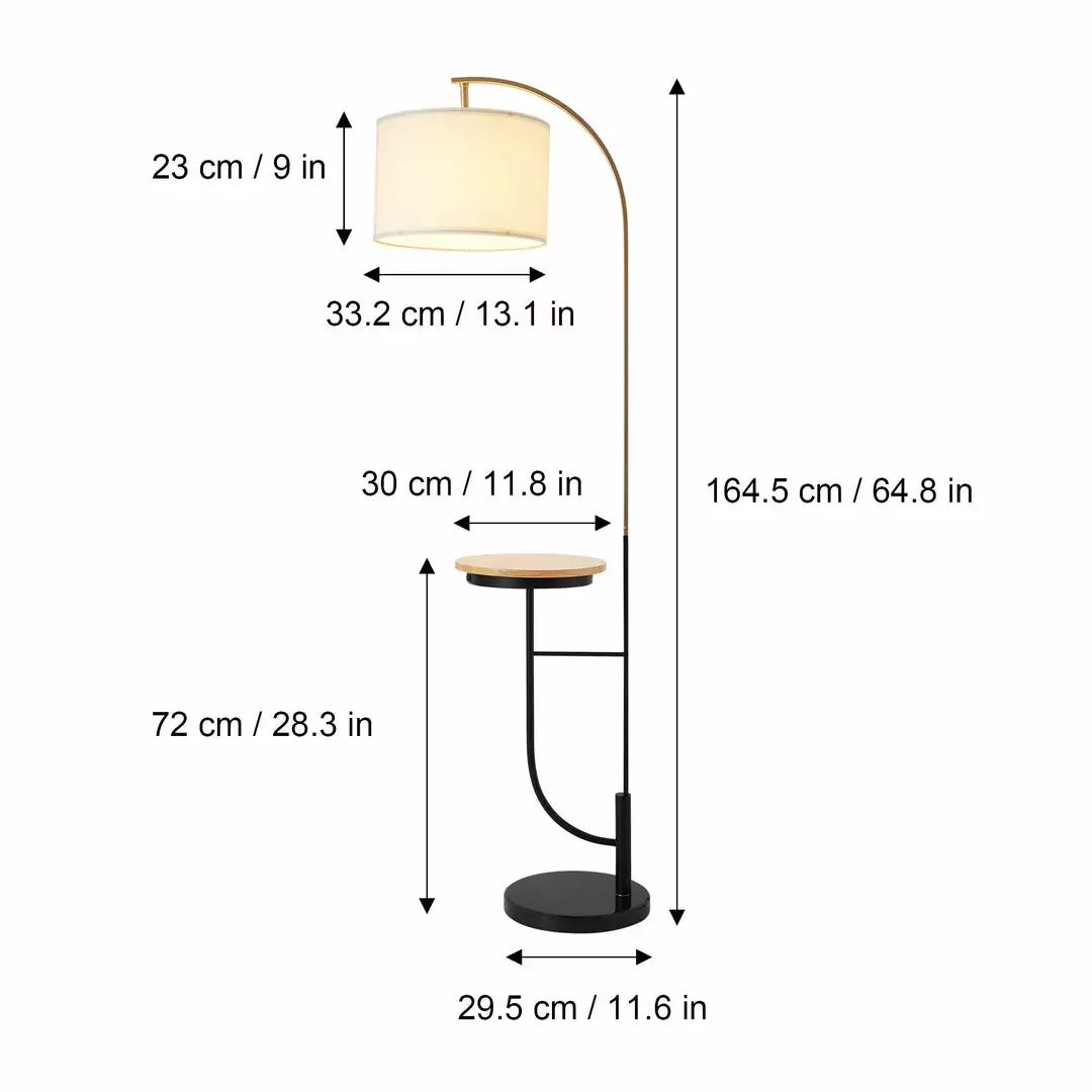 Illuminate your space while adding elegant décor with the Teamson Home Danna Arc 65″ Floor Lamp with Table and USB Port. This decorative lamp features a white drum shade that softens the light to add a soft glow to your living space. The built-in table provides a versatile surface to help you organize your space, and the built-in USB port allows you to keep your devices charged and ready to go. Made of durable materials, this floor lamp is built to last for long-term use. A sturdy marble base allows this lamp to resist tipping over for dependable lighting in high-traffic areas. For quick assembly and easy cleaning, this accent lamp includes step-by-step instructions. The slim design of the Teamson Home Danna Arc 65″ Floor Lamp with Table and USB Port makes it easy to fit into tight spaces for when you want to re-arrange your furniture, and it measures just 13.78″ x 13.78″ x 65″ to add a stylish light source to almost any space in your home.