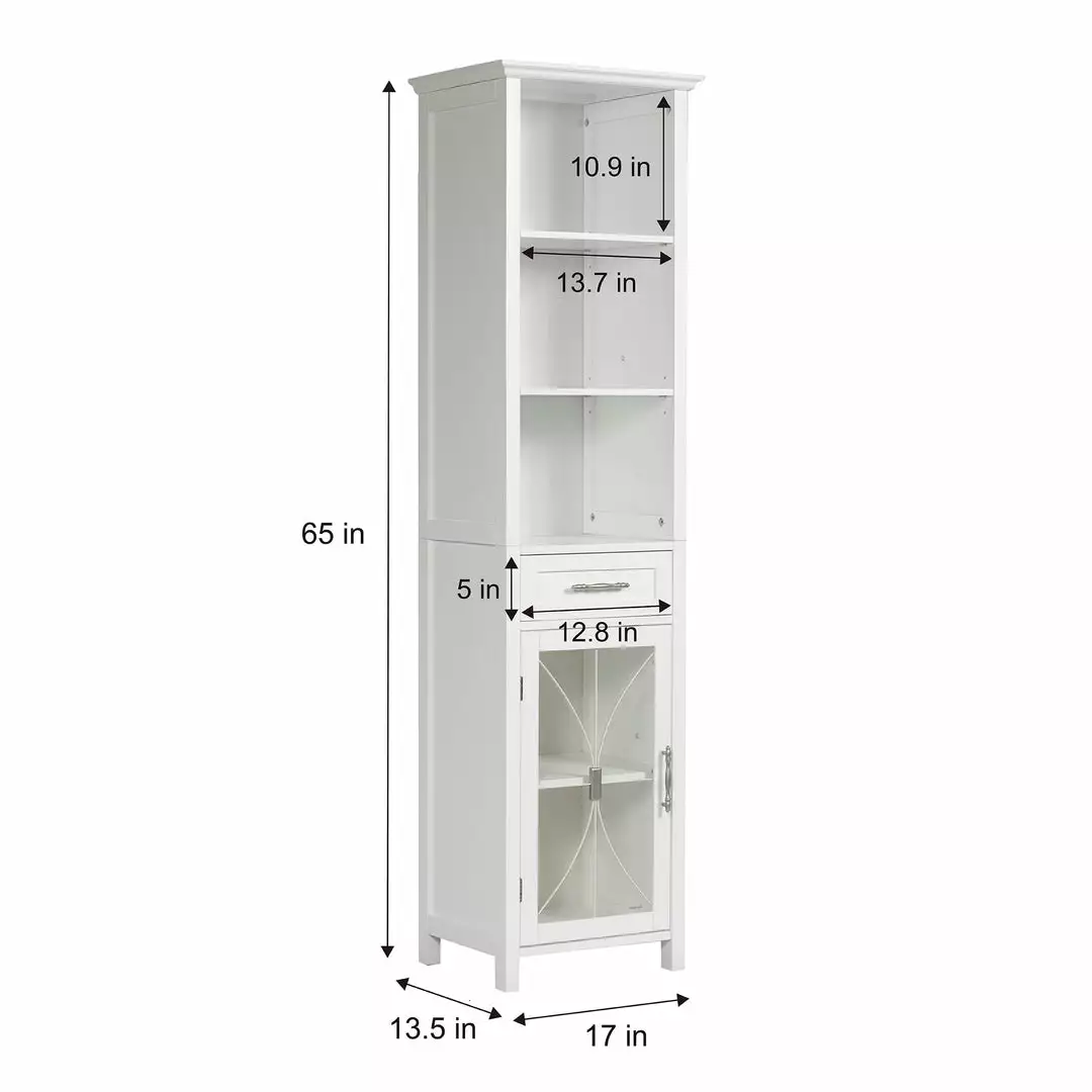 TeamsonUS Teamson Home Delaney Multi Functional Tall Free Standing Linen Storage Tower With Single Drawer