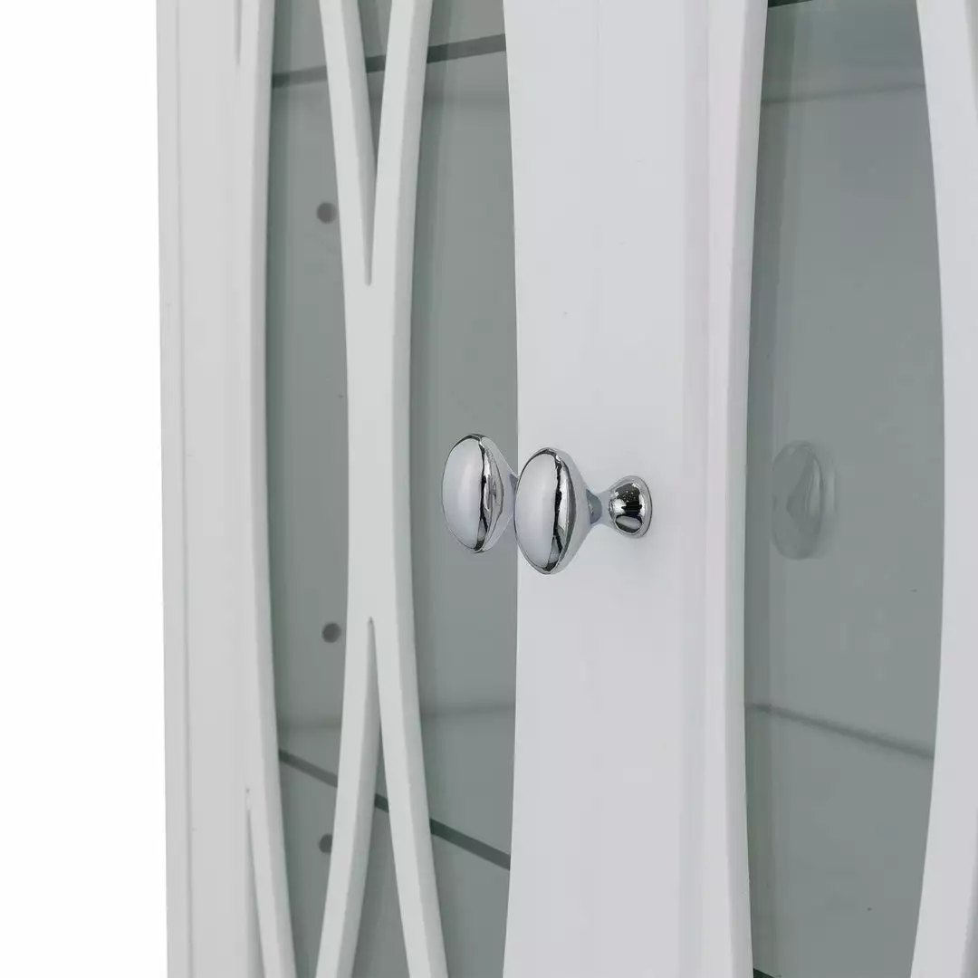 - STYLISH CABINET: Features a timeless white finish with two doors and oval-shaped knobs that are finished in satin nickel for a timeless addition to your space