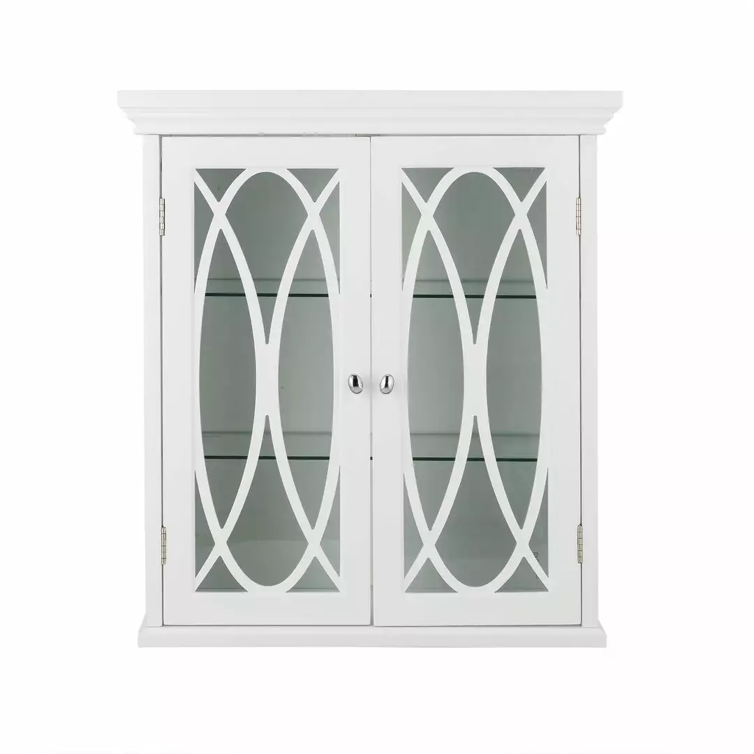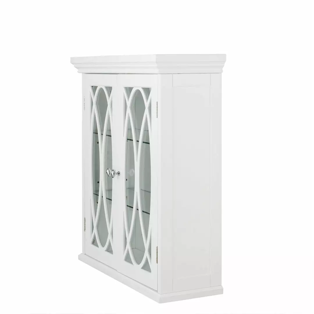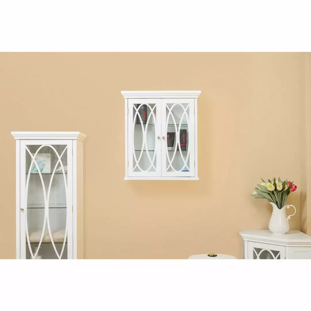 Upgrade your home storage while adding classic style with the Teamson Home Florence 2 Door Wooden removable Wall Cabinet with Adjustable Shelves. This stylish storage solution features a timeless white finish with 2 doors and oval-shaped knobs that are finished in satin nickel for a timeless addition to your space. The 2 included adjustable glass shelves provide ample storage to reduce clutter and keep your home tidy. Constructed from durable engineered wood and tempered glass, this wall cabinet is built to provide you with long-lasting organization. Easy, step-by-step instructions and all of the hardware are included for quick assembly. Purchase this stylish cabinet alone or with other items from the Florence collection for a cohesive, updated look. The Teamson Home Florence 2 Door Wooden Removable Wall Cabinet with Adjustable Shelves measures 22″ x 8″ x 24.5″ to provide removable storage without taking up too much space in your living area.