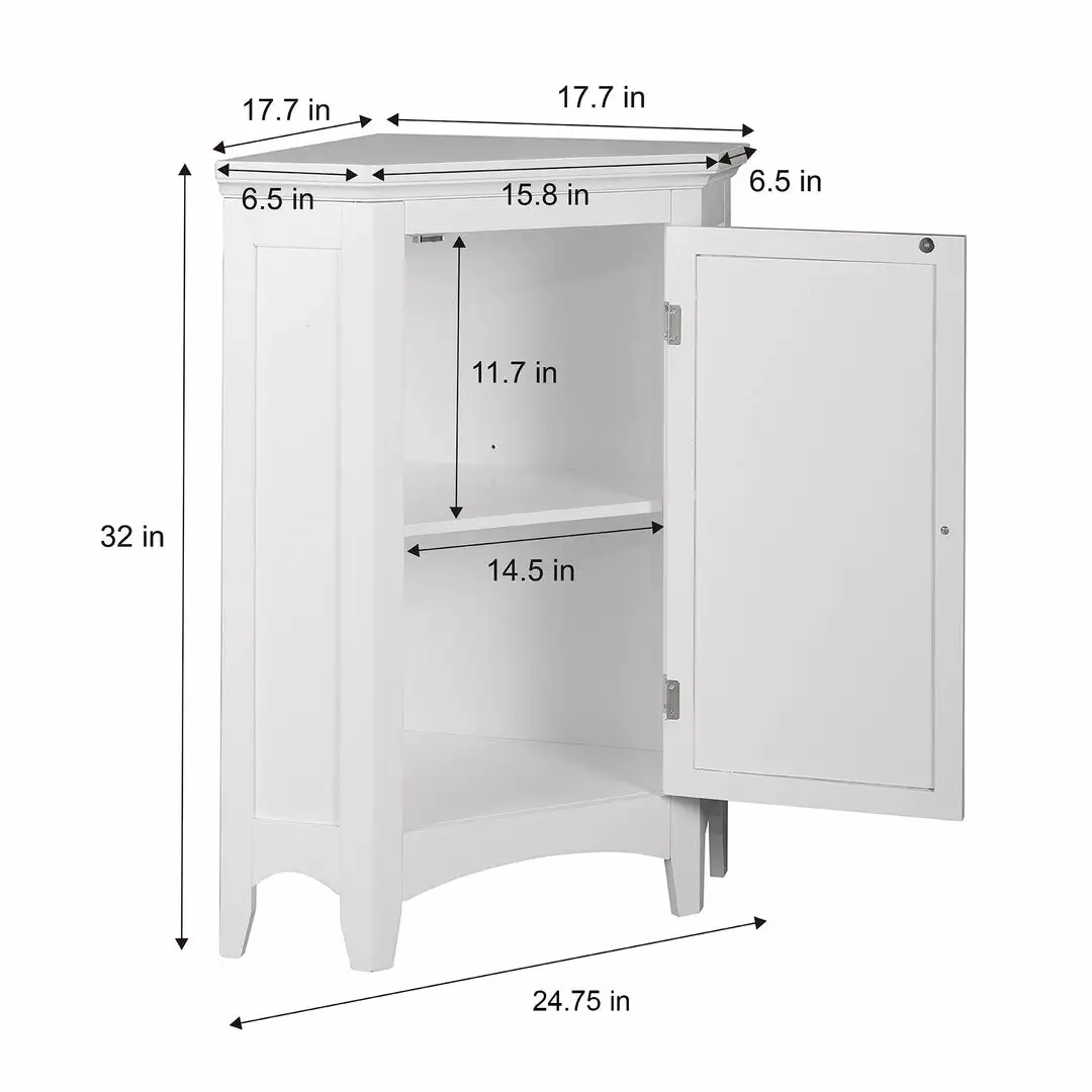 Teamson Home Glancy Wooden Corner Floor Cabinet with Shutter Door, White