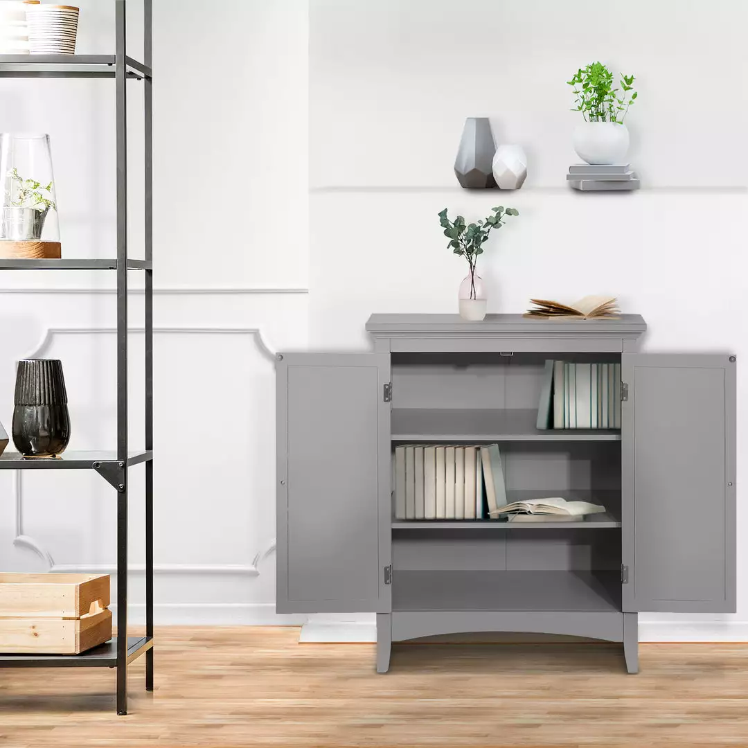 Teamson Home Glancy Wooden Floor Cabinet with Shutter Doors and Adjustable Shelves, Gray