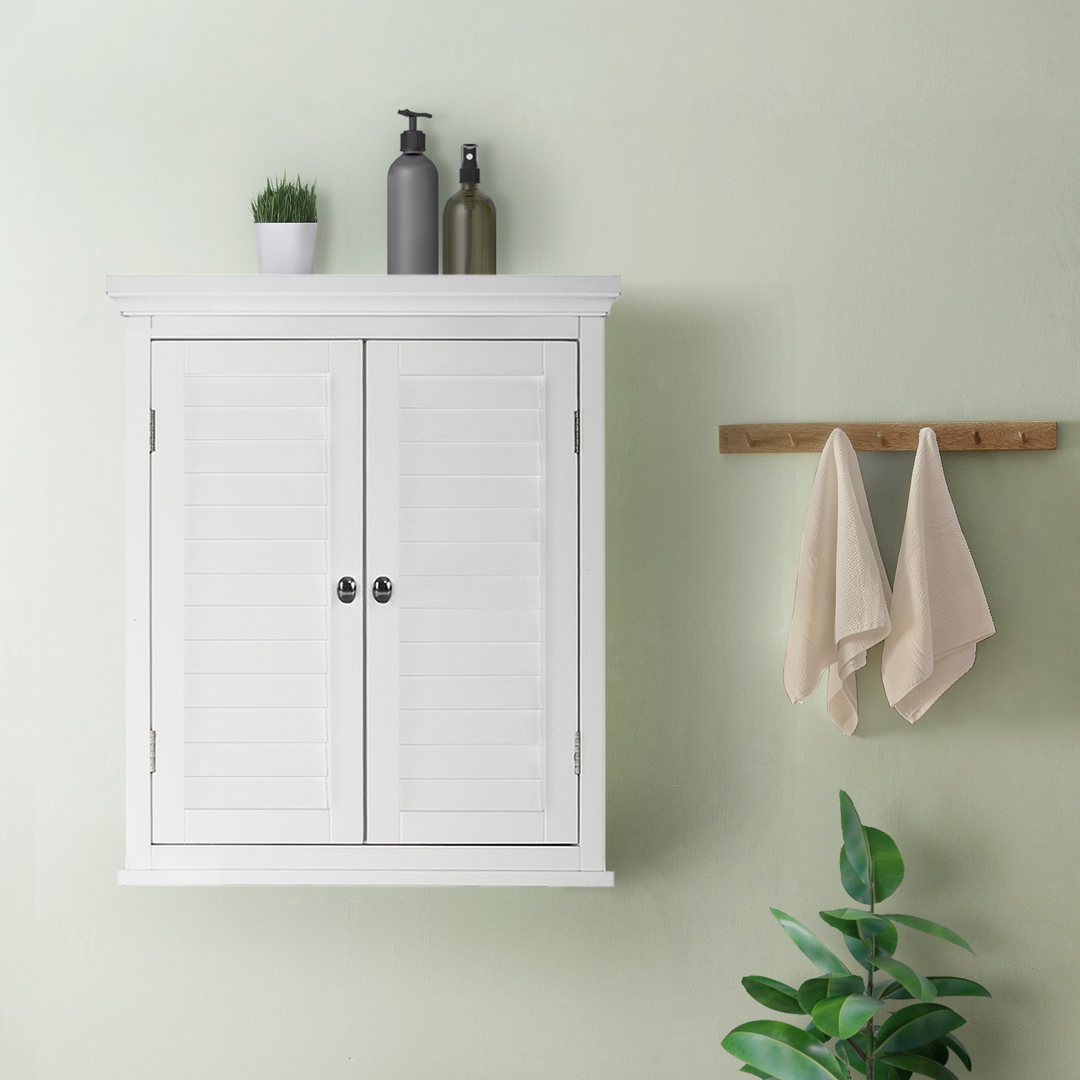 Teamson Home Glancy Wooden Wall Cabinet with Shutter Doors, White