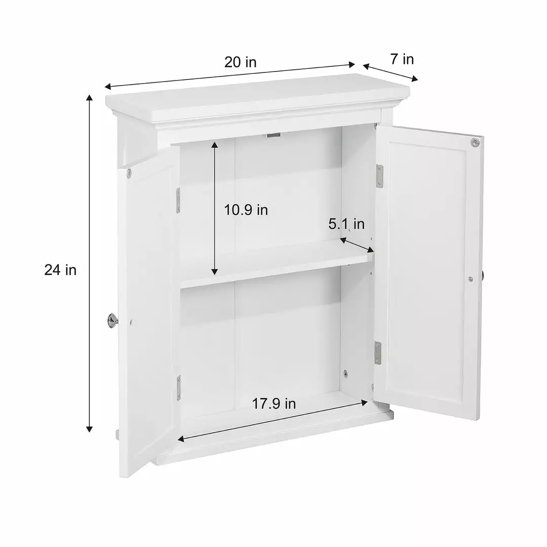 Upgrade your home storage while adding classic style with the Teamson Home Glancy Wooden Removable Wall Cabinet with Shutter Doors. This decorative cabinet features a timeless white finish with a crown molded top and skirting, chrome-finished knobs and louvered doors for a beautiful addition to your space. The included interior shelf makes this cabinet a functional solution to your storage needs. Constructed from durable engineered wood, this storage unit is built to provide you with long-lasting organization. Easy, step-by-step instructions and all of the hardware are included for quick assembly. Purchase this stylish wall cabinet alone or with other items from the Glancy collection for a cohesive, updated look. The Teamson Home Glancy Wooden Removable Wall Cabinet with Shutter Doors measures 20″ x 7″ x 24″ to provide removable storage without taking up too much space in your living area.