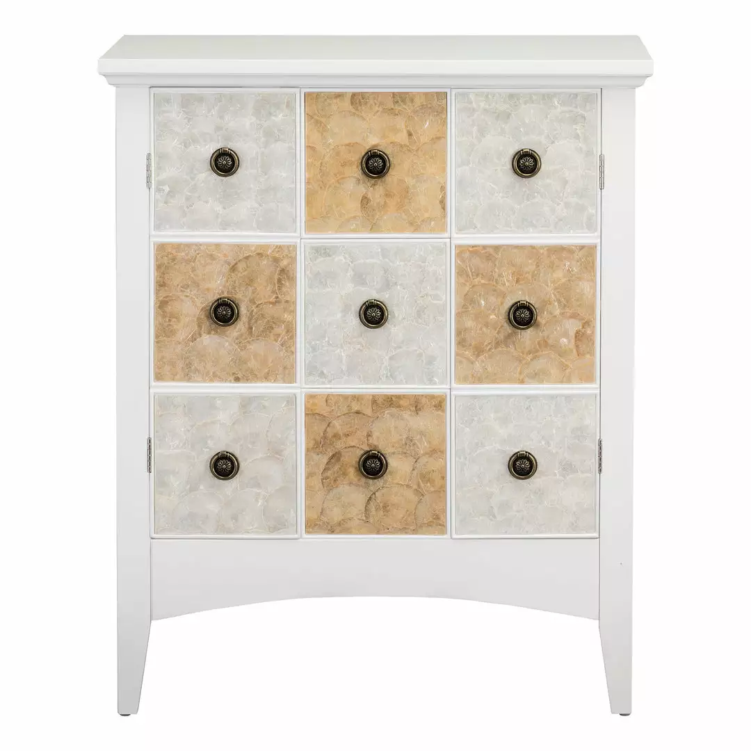 - Has the look and feel of abalone shells on the door fronts and drawer fronts.