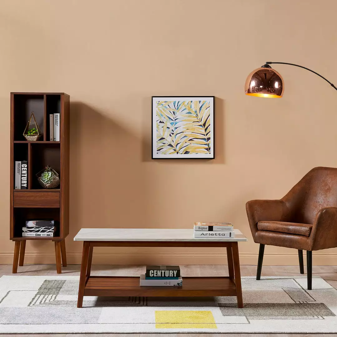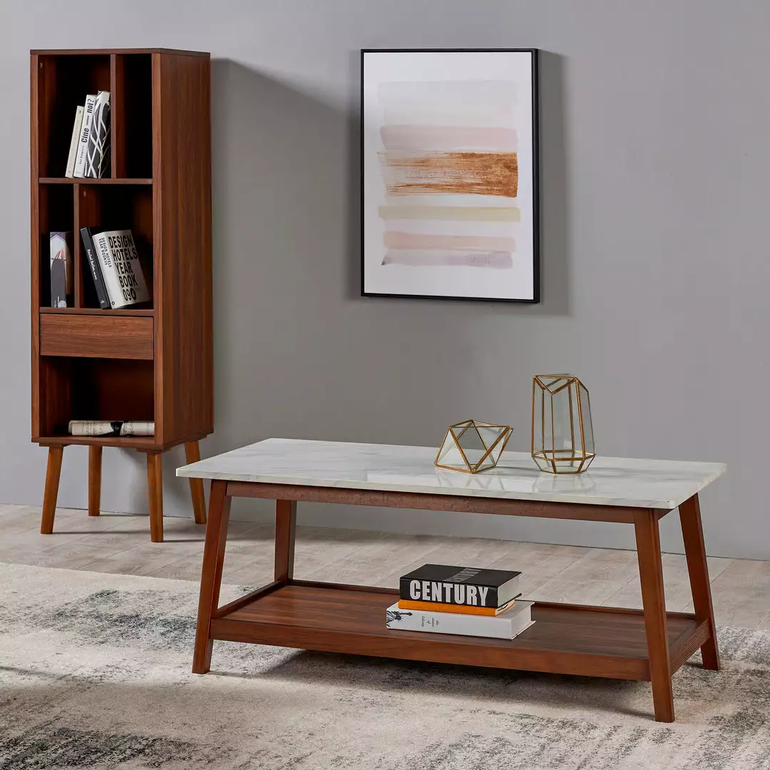 - STYLE: Featuring a generous faux marble top surface with walnut finish is stylish and chic blends well with any accent pieces in your room.