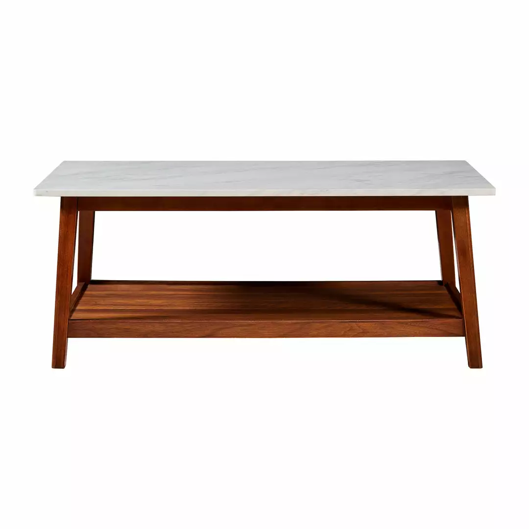 Teamson Home Kingston Wooden Coffee Table with Storage and Marble-Look Top, Marble/Walnut