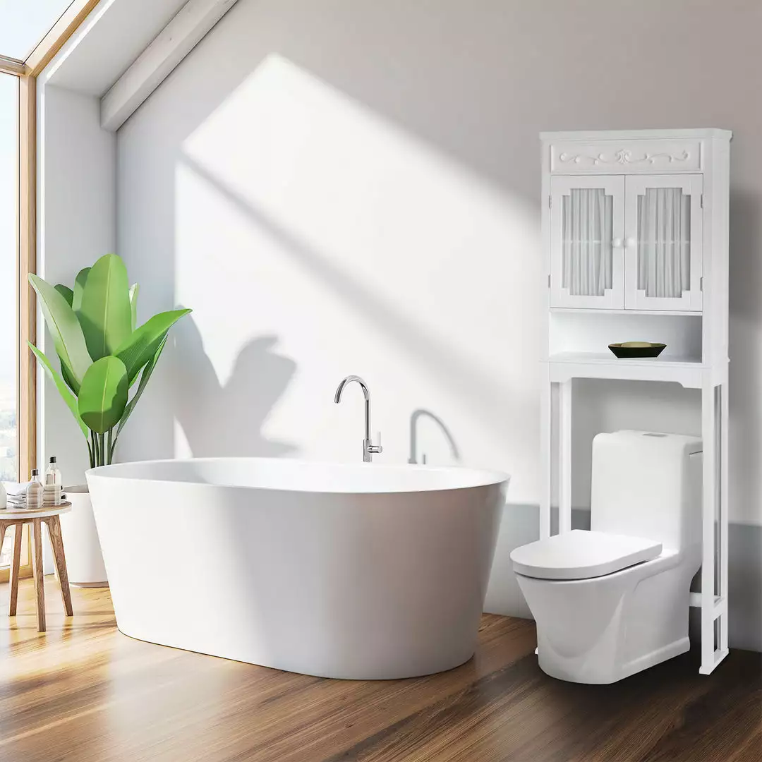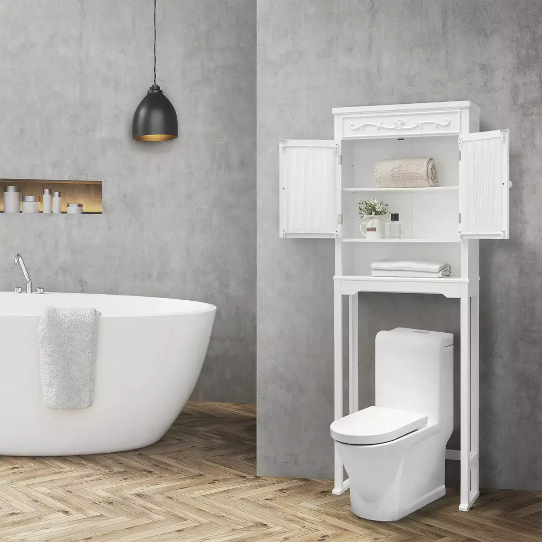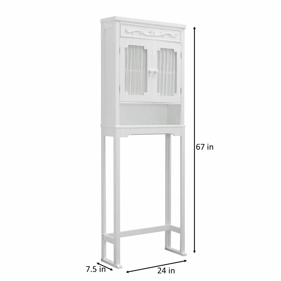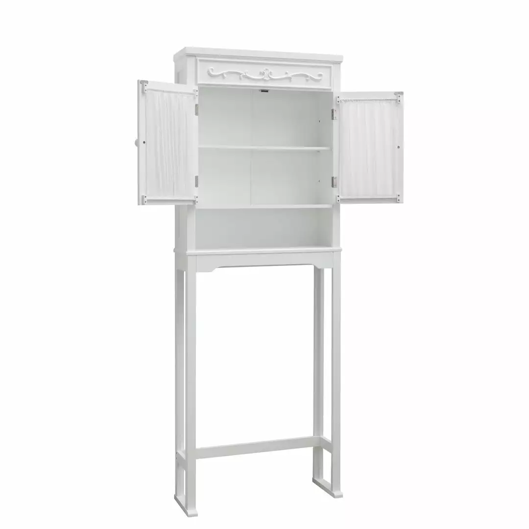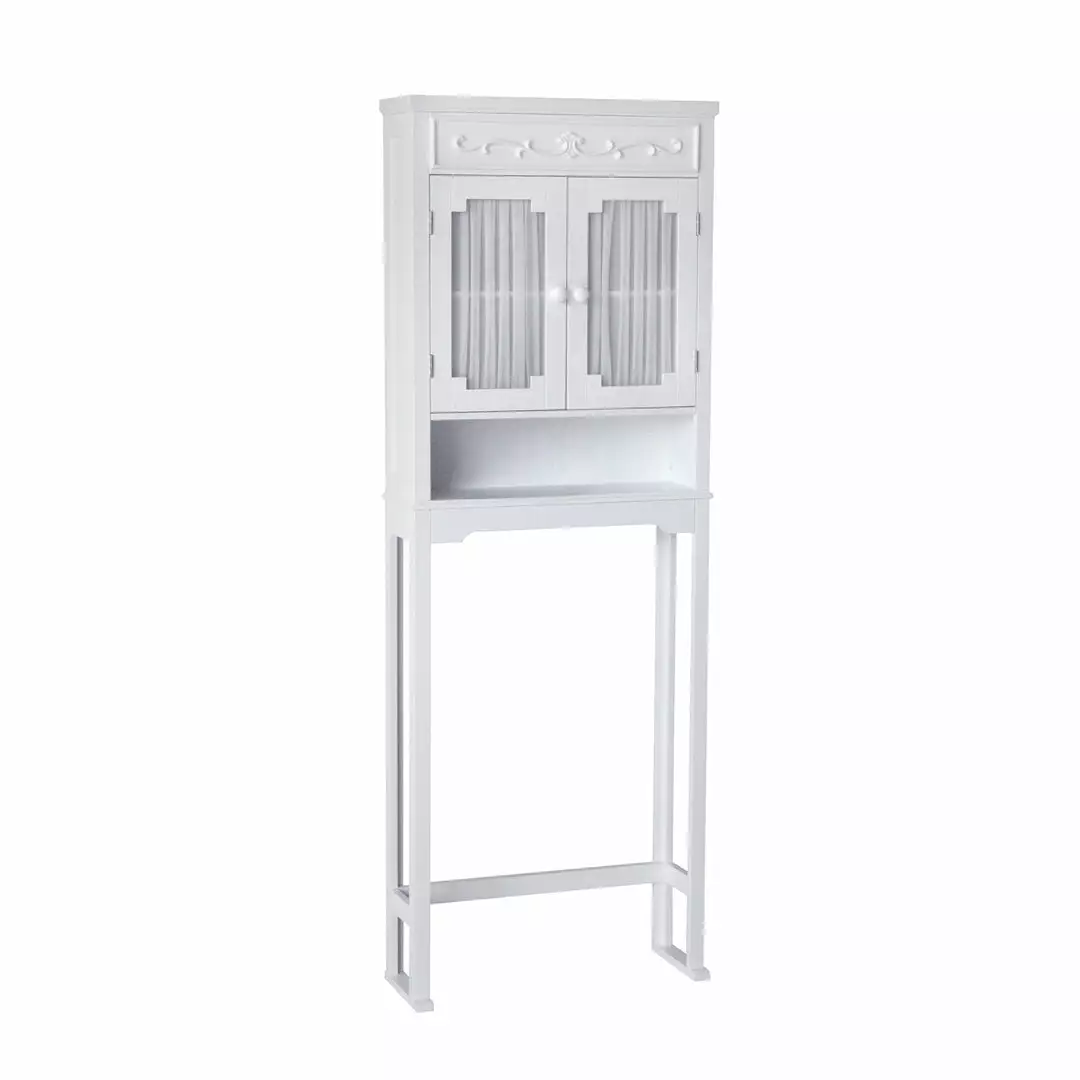Teamson Home Lisbon Over the Toilet Space Saver Bathroom Storage Cabinet with Curtained Doors Adjustable Shelves