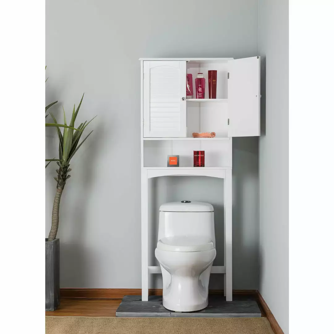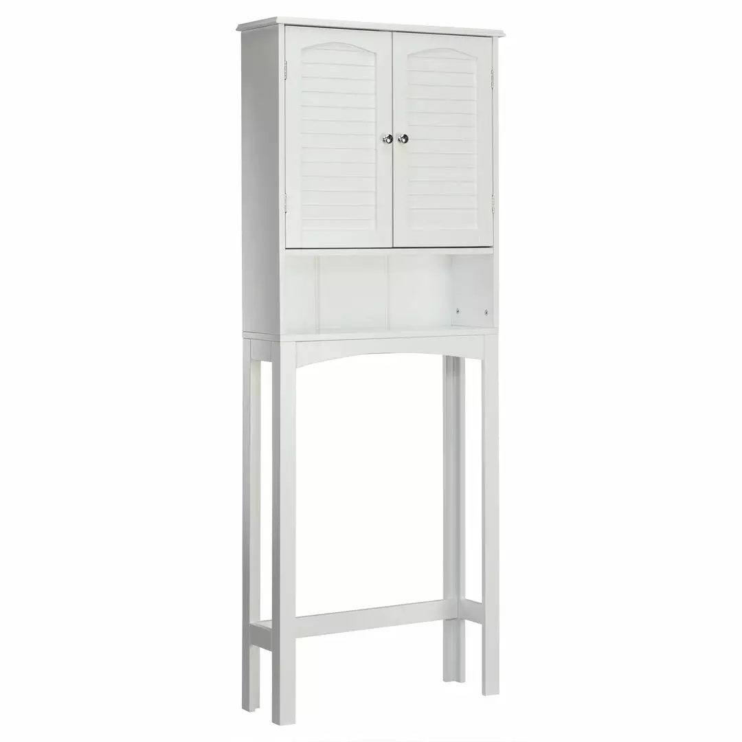 Teamson Home Louis Over-the-Toilet Storage Cabinet with Two Shutter Style Doors and Open Shelf, White