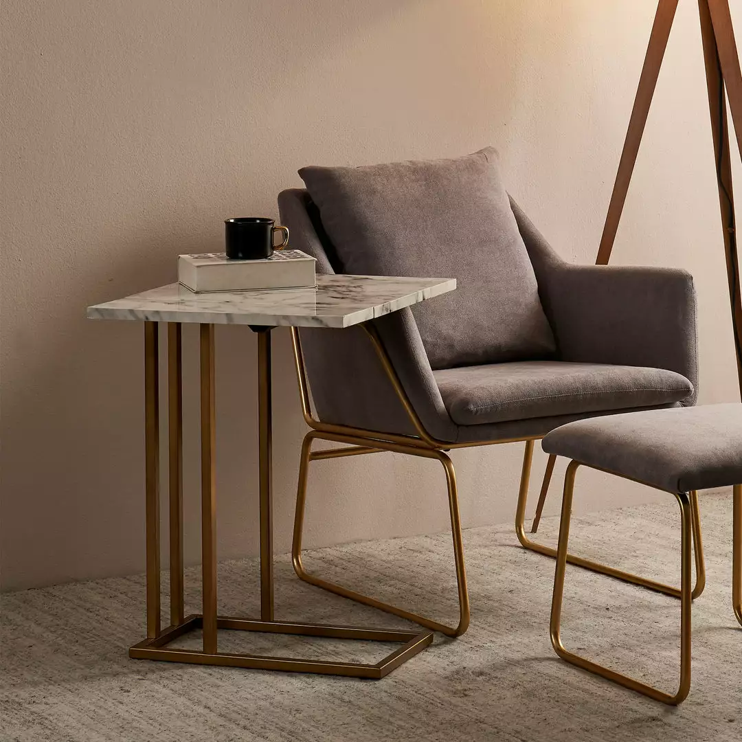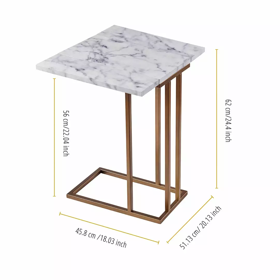 TeamsonUS Teamson Home Marmo Modern Marble-Look C Shape Side Table With Extension, Marble/Brass