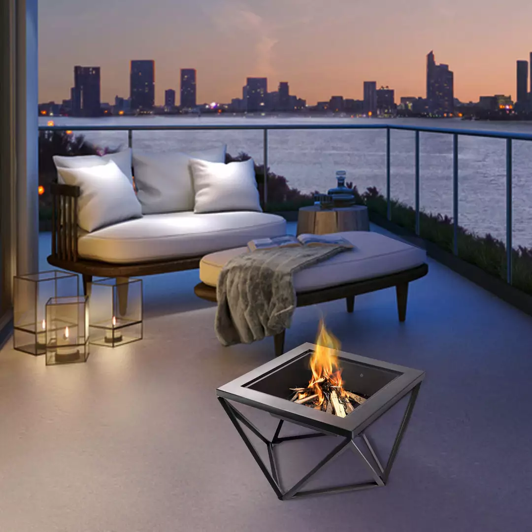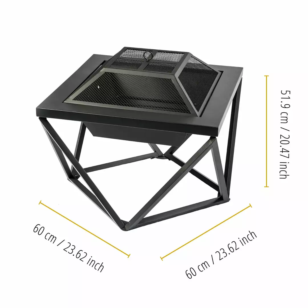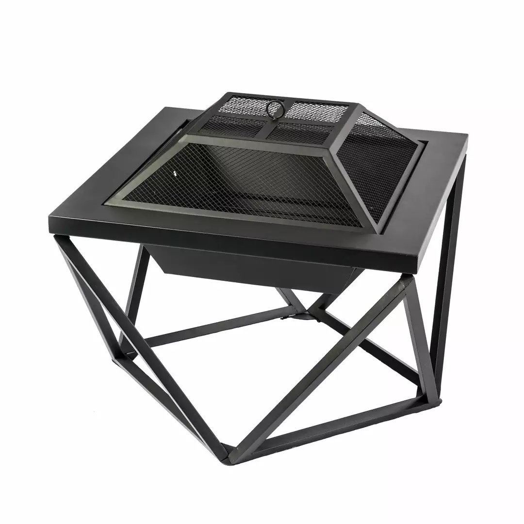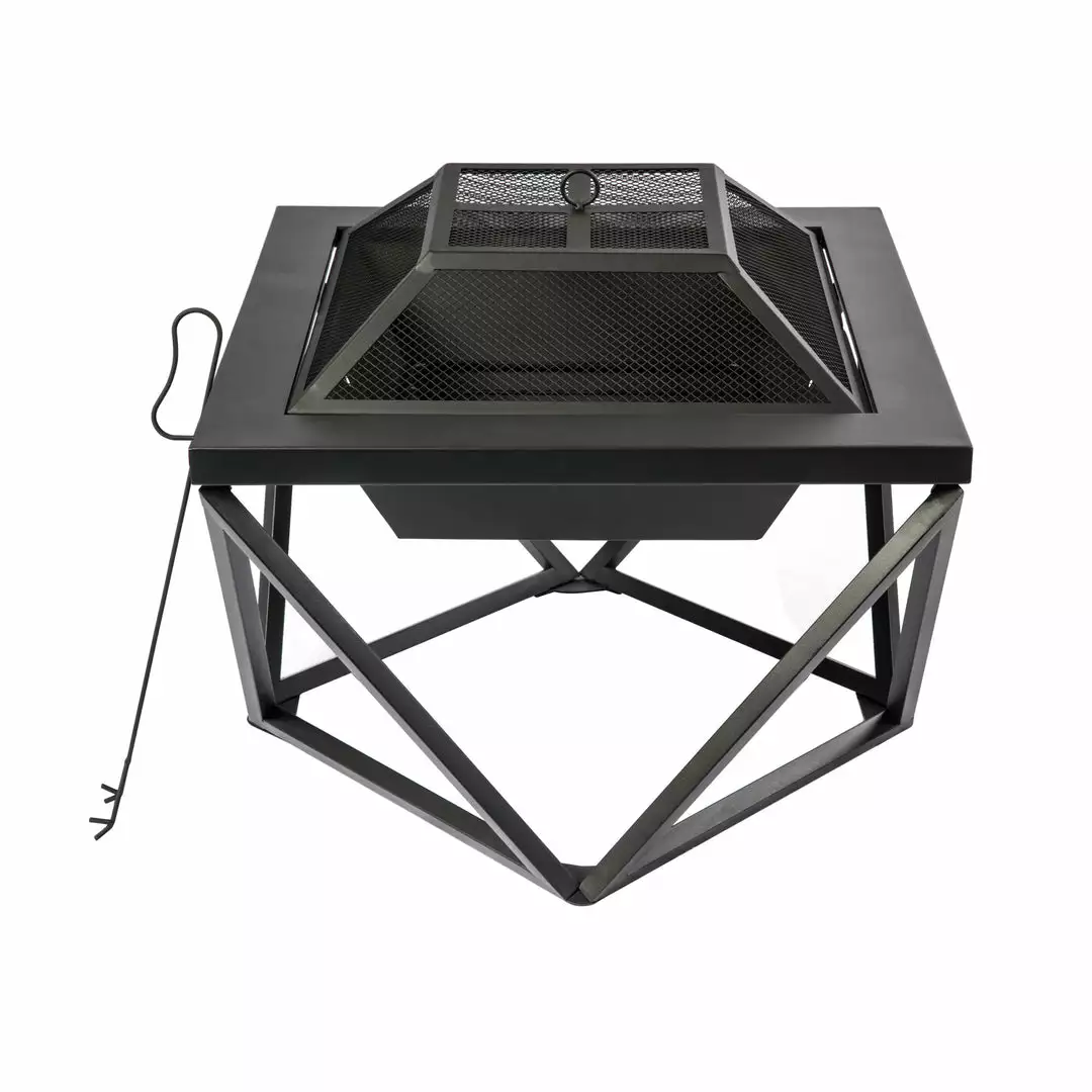 - 24″ WOOD BURNING FIRE PIT: Features a modern square shape and geometric metal base to add warmth and ambience to your backyard, patio, deck, porch, or any outdoor space