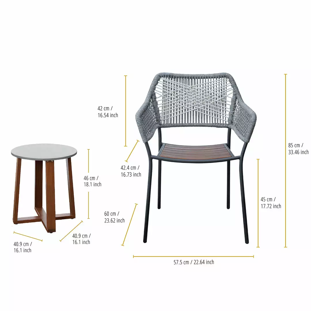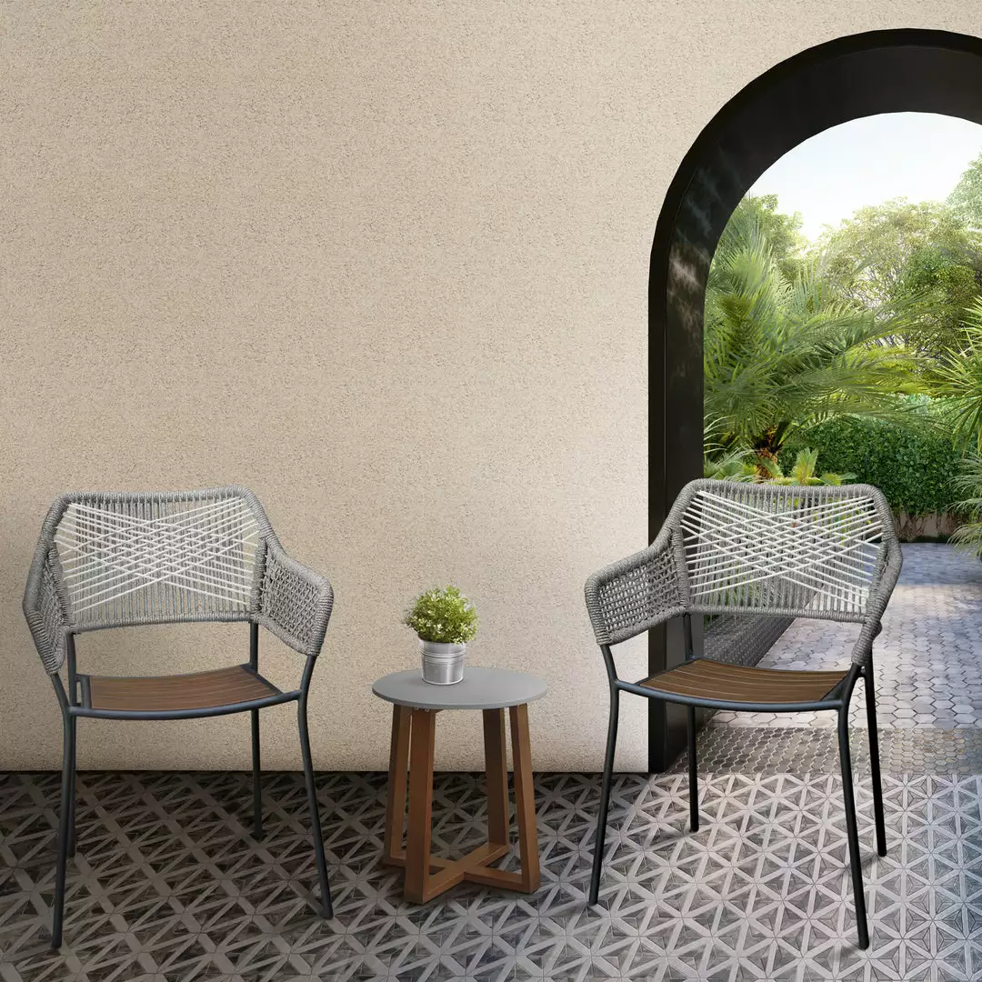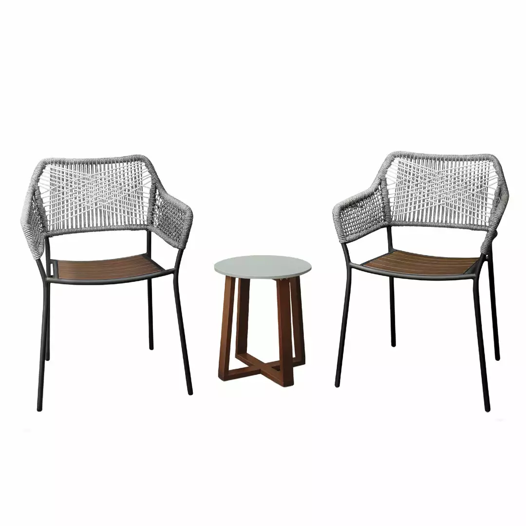 Teamson Home Outdoor 3-Piece Stackable Patio Set with Two Rope Eucalyptus Chairs and Bistro Table Set, Gray