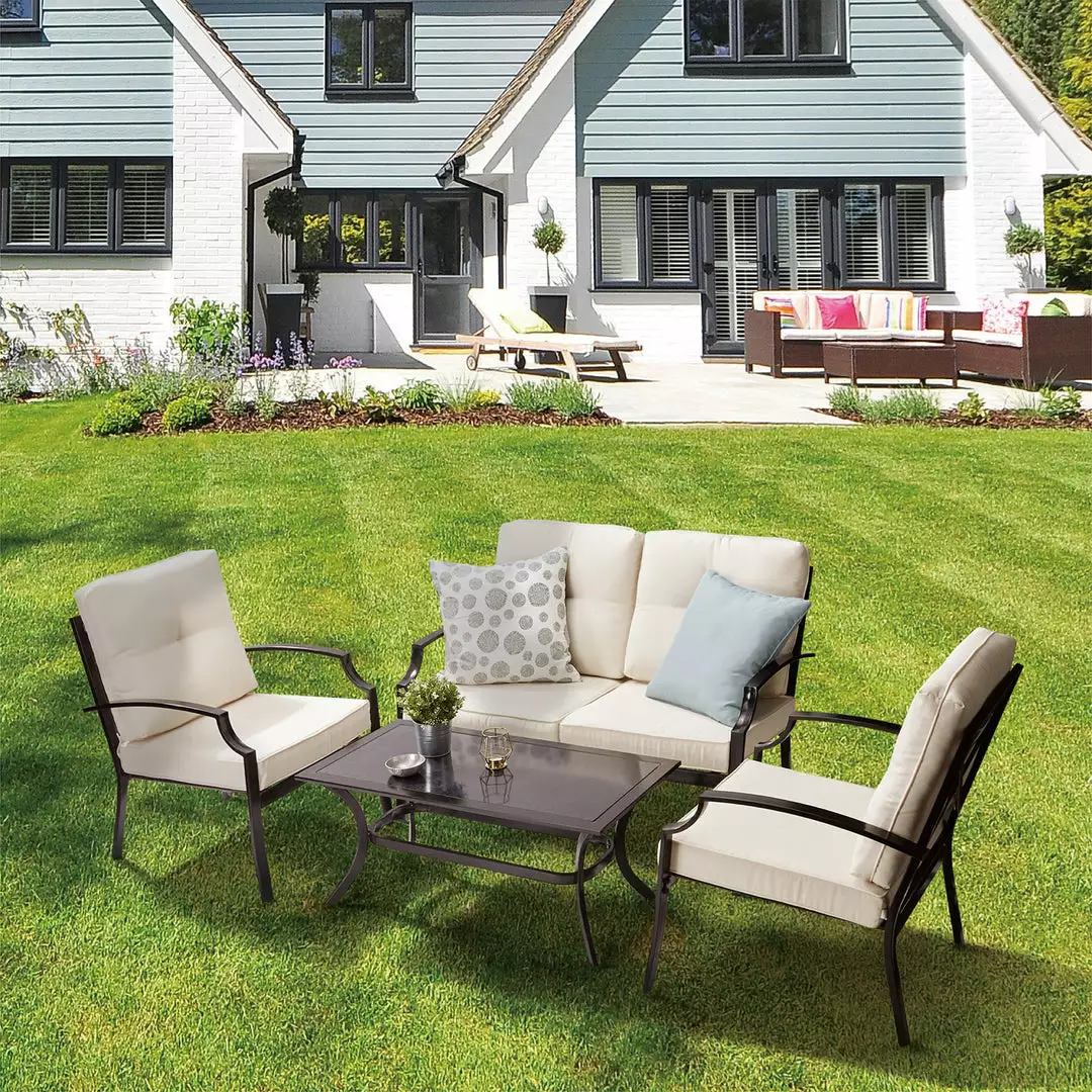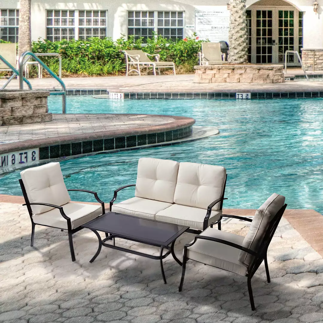 Teamson Home Outdoor 4-Piece Metal Patio Set with Loveseat, Two Chairs & Table, Black/Beige