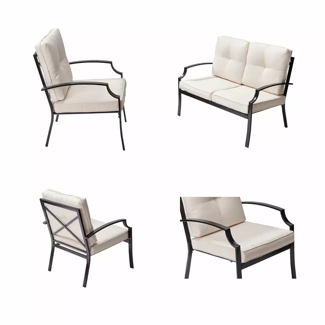 - METAL PATIO SEATING SET: Includes a two-person loveseat, coffee table, and two chairs to add comfortable seating to your backyard, patio, deck, front porch, balcony, or any outdoor space