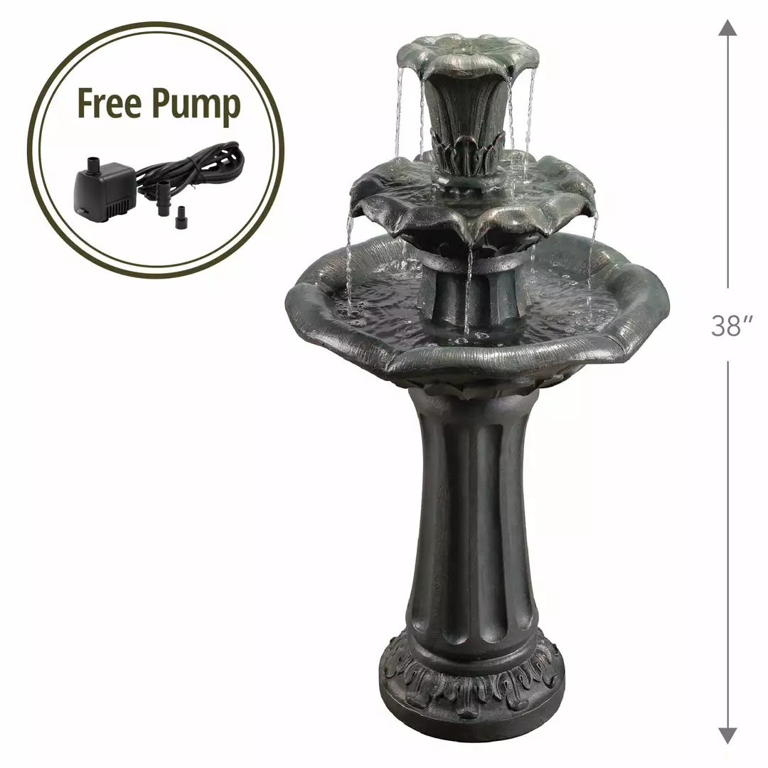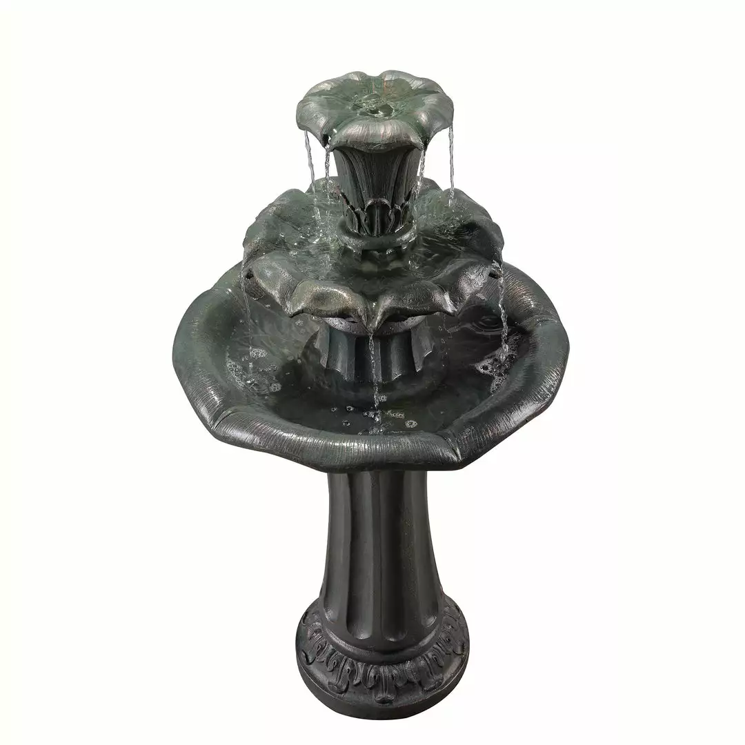TeamsonUS Teamson Home Outdoor Lily Flower Stone 3-Tier Waterfall Fountain, Gray