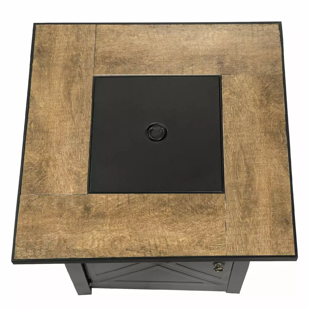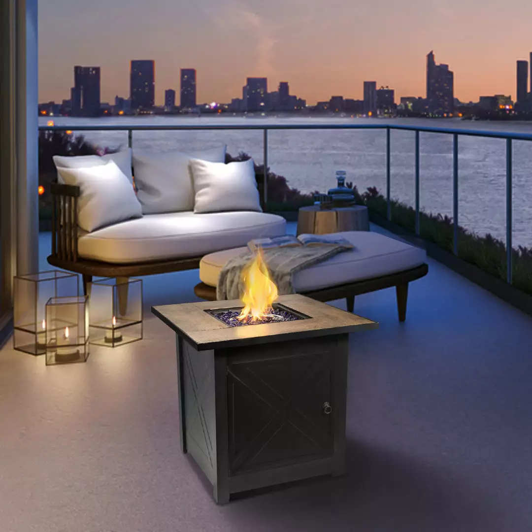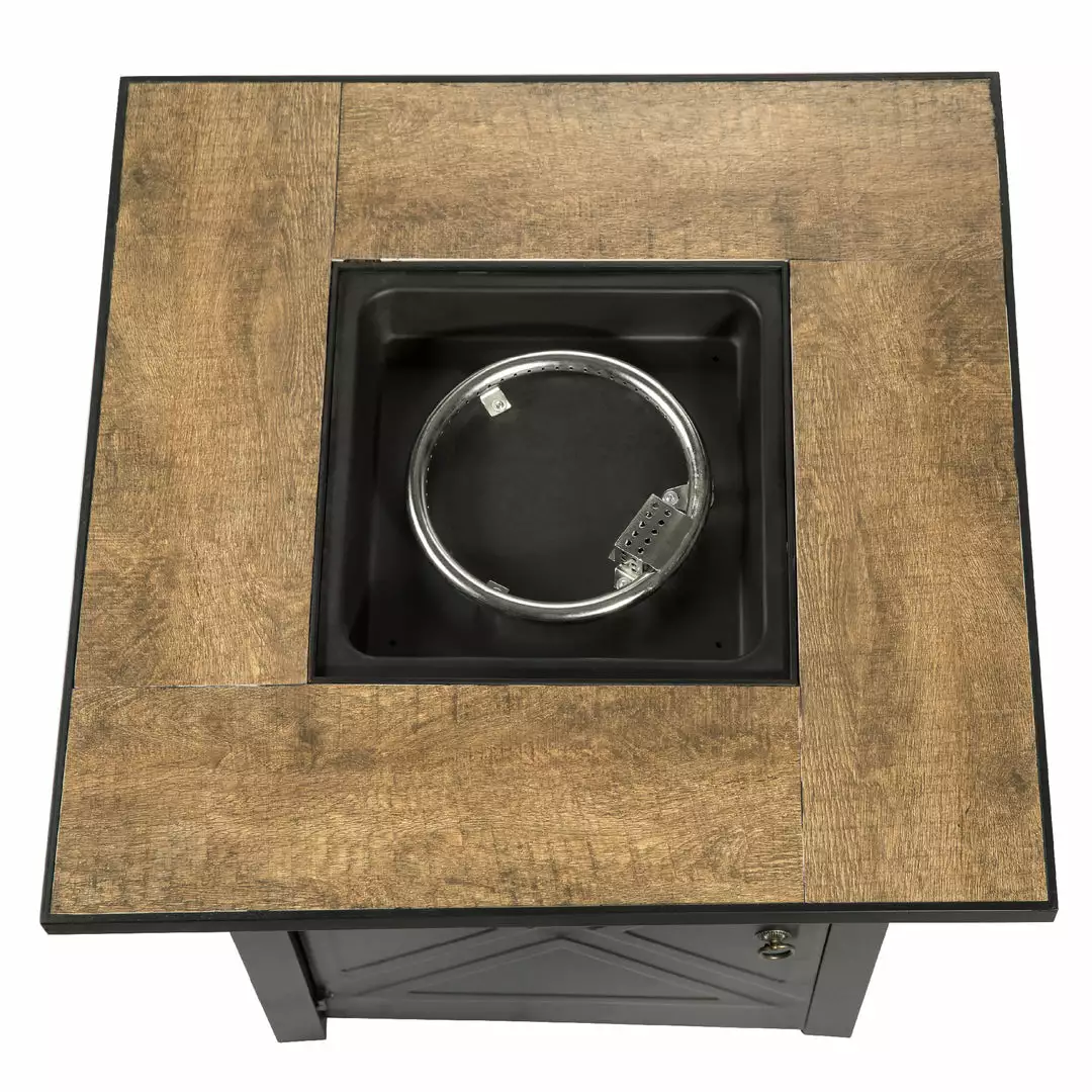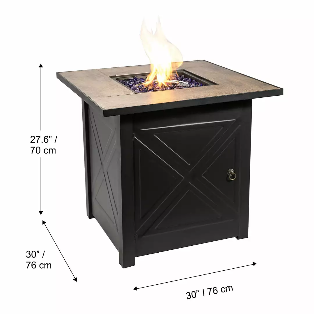 Teamson Home Outdoor Square 30″ Propane Ceramic Gas Fire Pit with Steel Base, Black/Stone